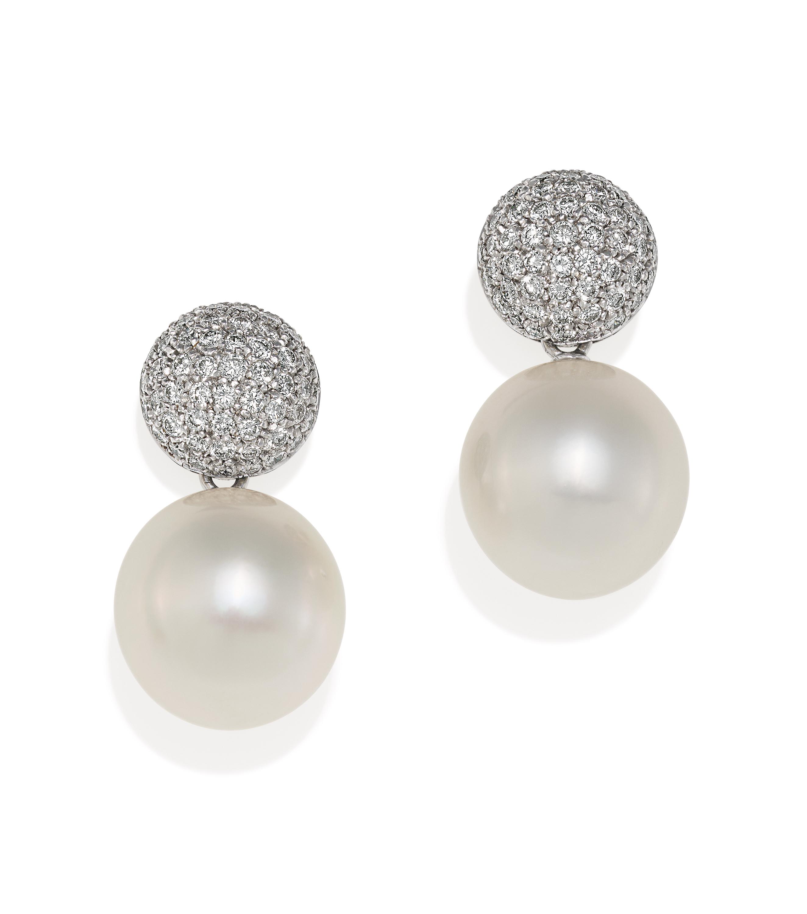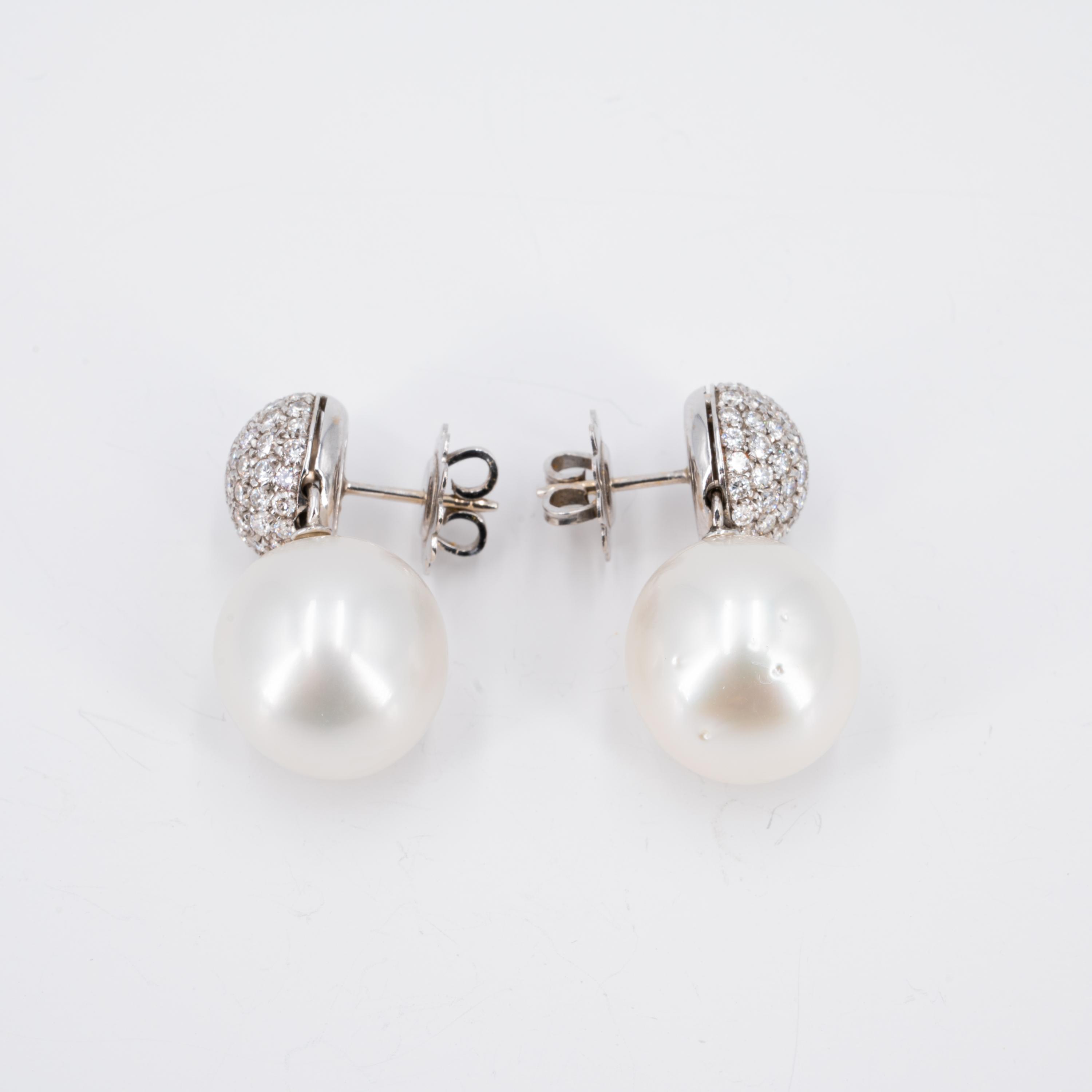 Org. Substanzen: 2 Südsee-Zuchtperlen ca. 14,6 x 15,2 - 15,4 mm, einige Wachstumsmerkmale, schöner Lüster.