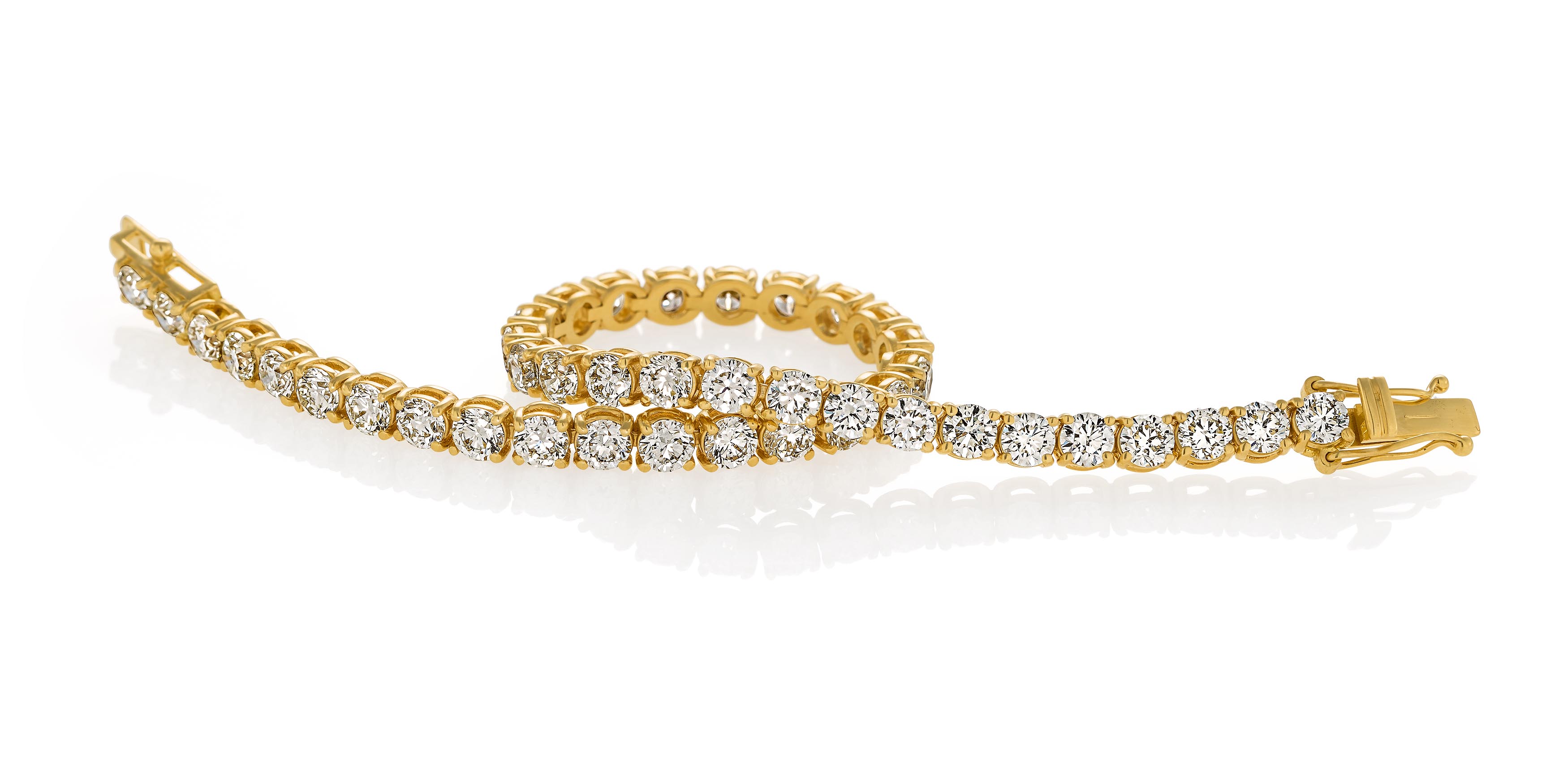 Diamanten: 42 Brillanten zus. ca. 8,40 ct., H-I/VS-P, alle Brillanten mit facettierter Rundiste.
