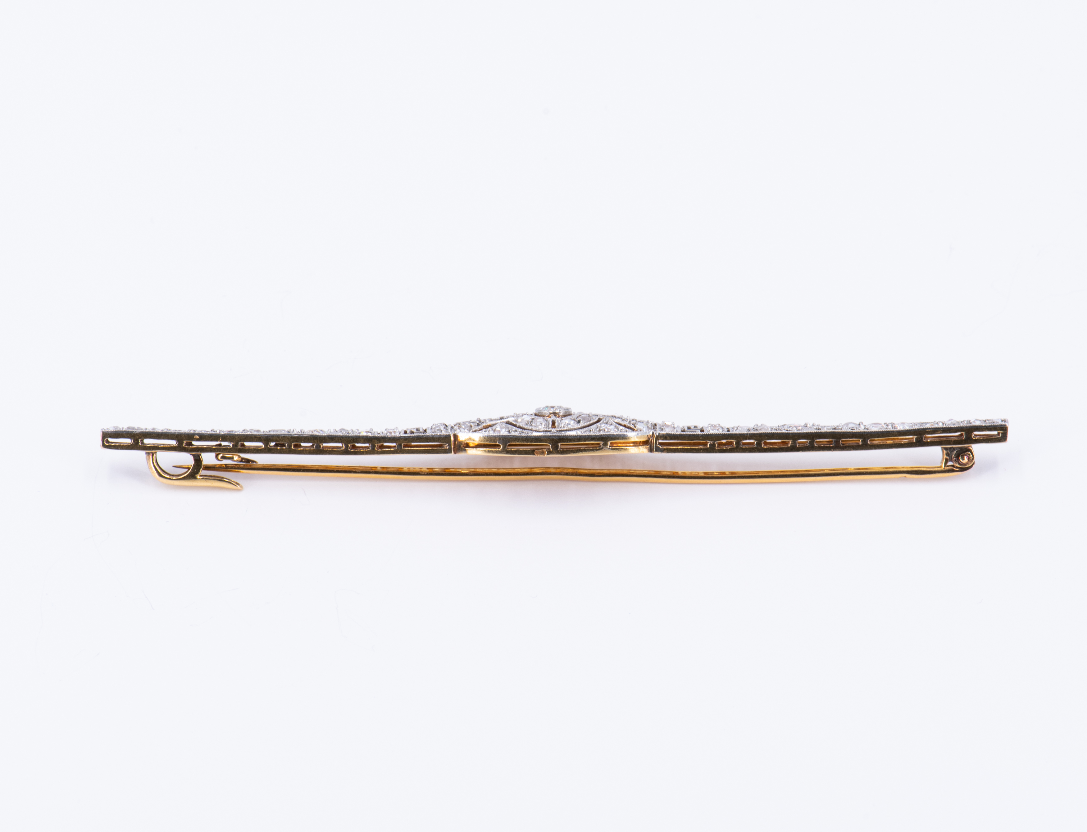 Beschreibung: Mäander-Verzierung. Französische Feingehaltspunze ab 1919 (s. Divis) an Schließe.