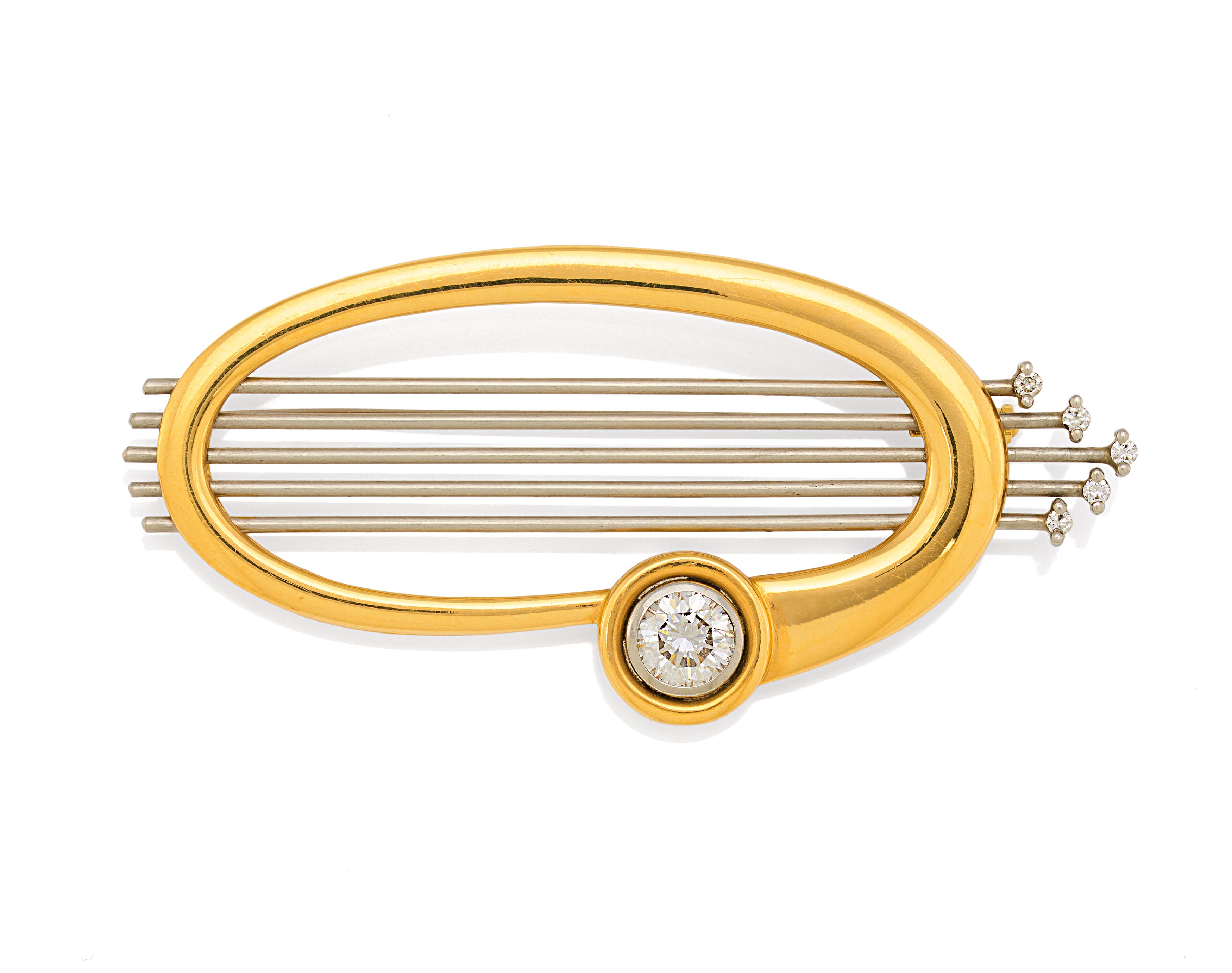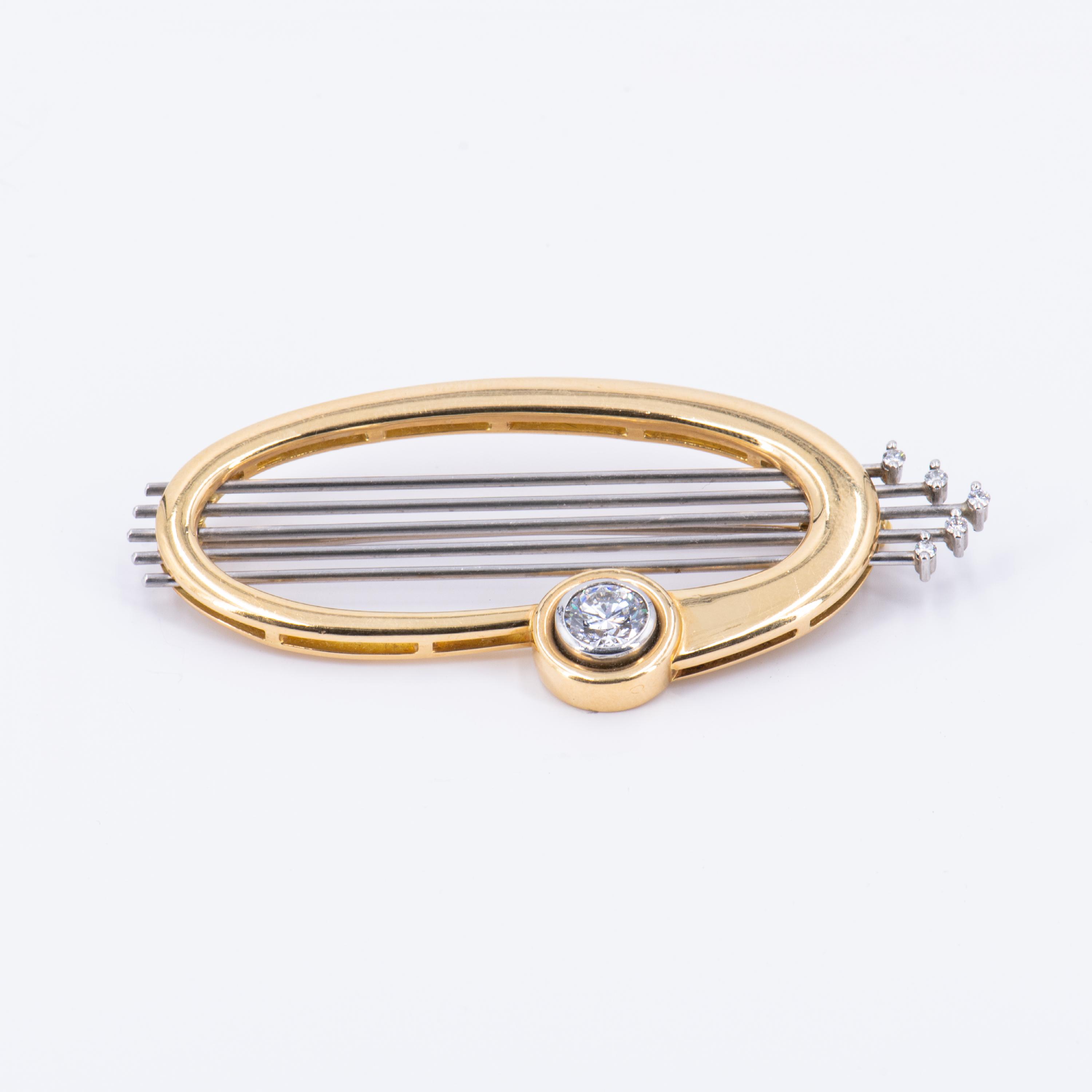 Diamanten: 1 Brillant ca. 1,0 ct., H/VS2, 5 winzige Brillanten Ø ca. 1,5 mm.