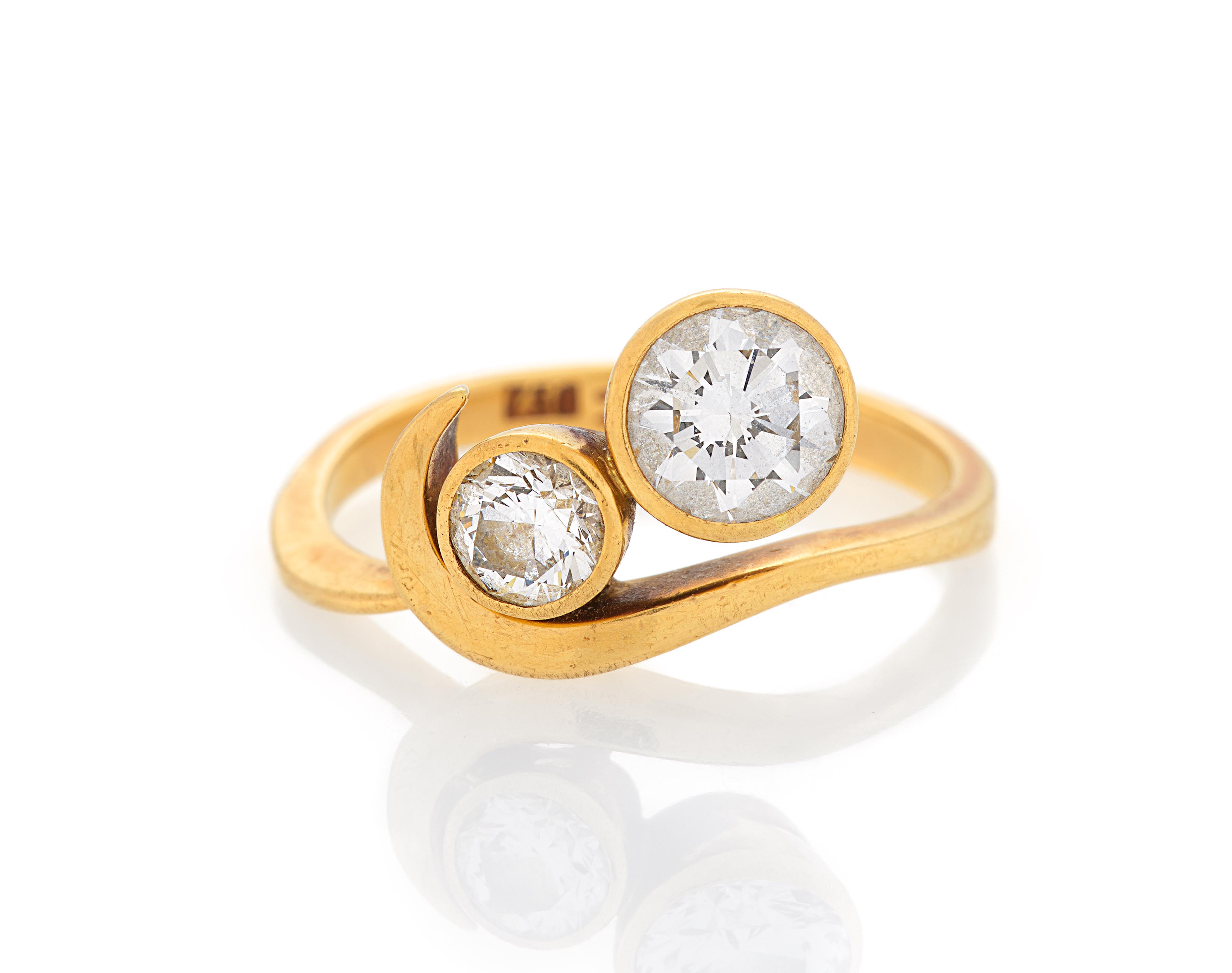 Diamanten: 1 Brillant 1,01 ct., E/VS2, 1 Brillant ca. 0,4 ct., G/SI.