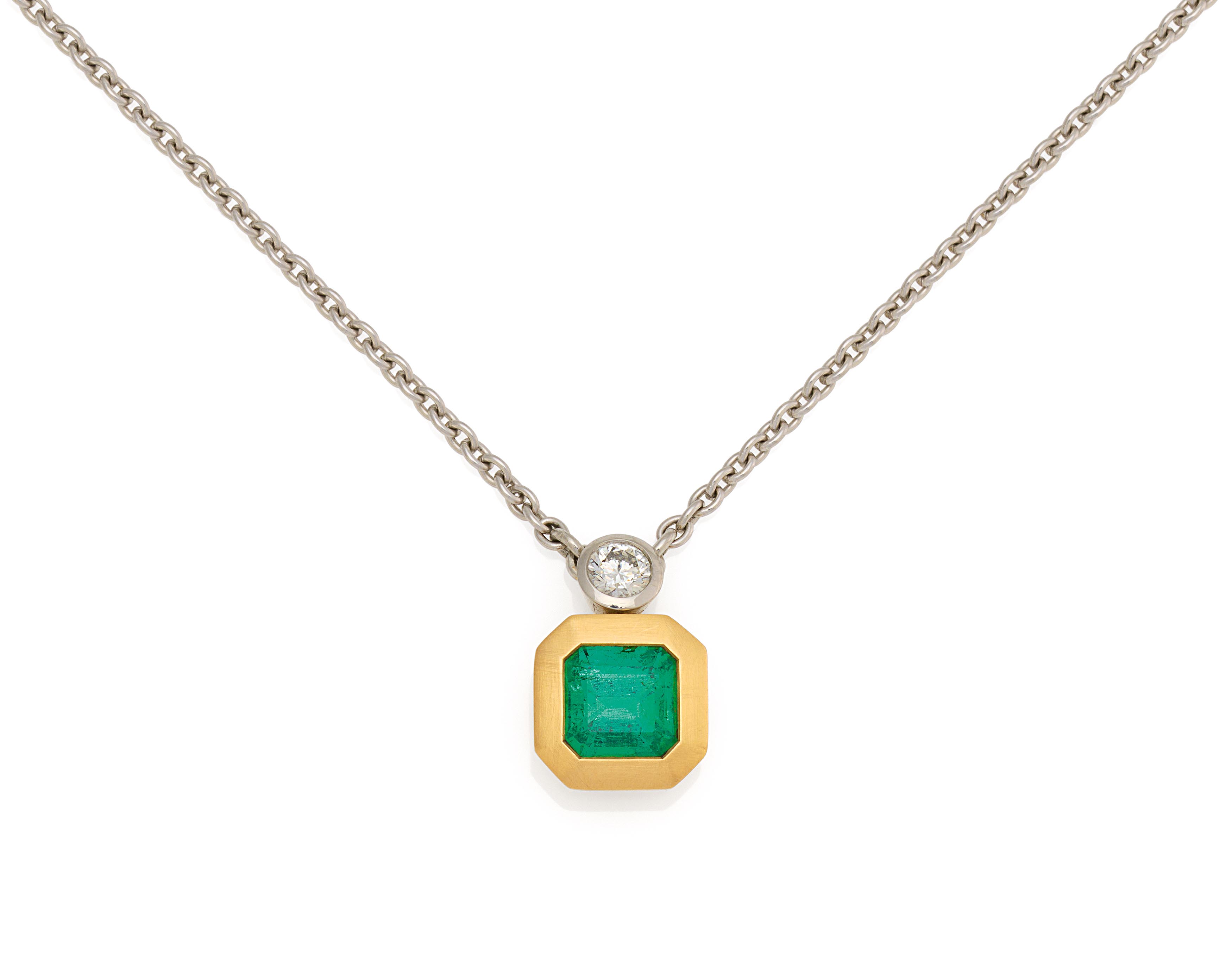 Edelsteine: 1 Smaragd im Emerald-Schliff ca. 0,8 ct., schöne Farbe, wenige Einschlüsse.