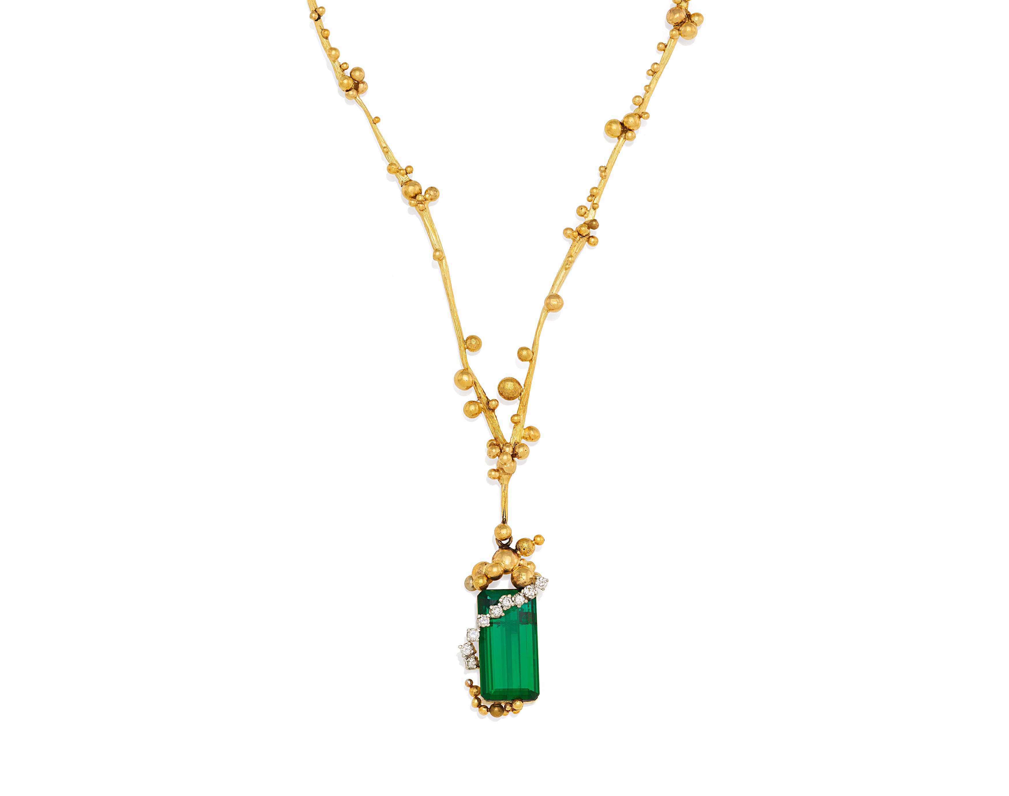 Edelsteine: 1 Turmalin im Emerald-Schliff ca. 15,0 ct., feine grüne Farbe.