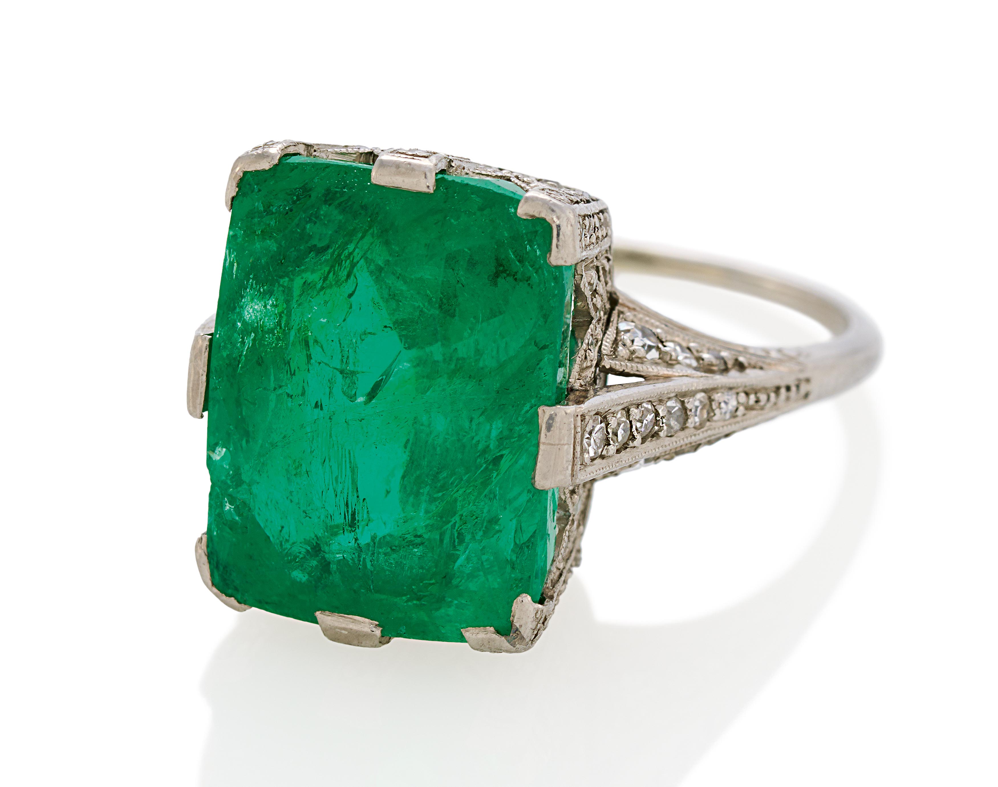 Edelsteine: 1 Smaragd im Kissen-Schliff ca. 9,8 ct.