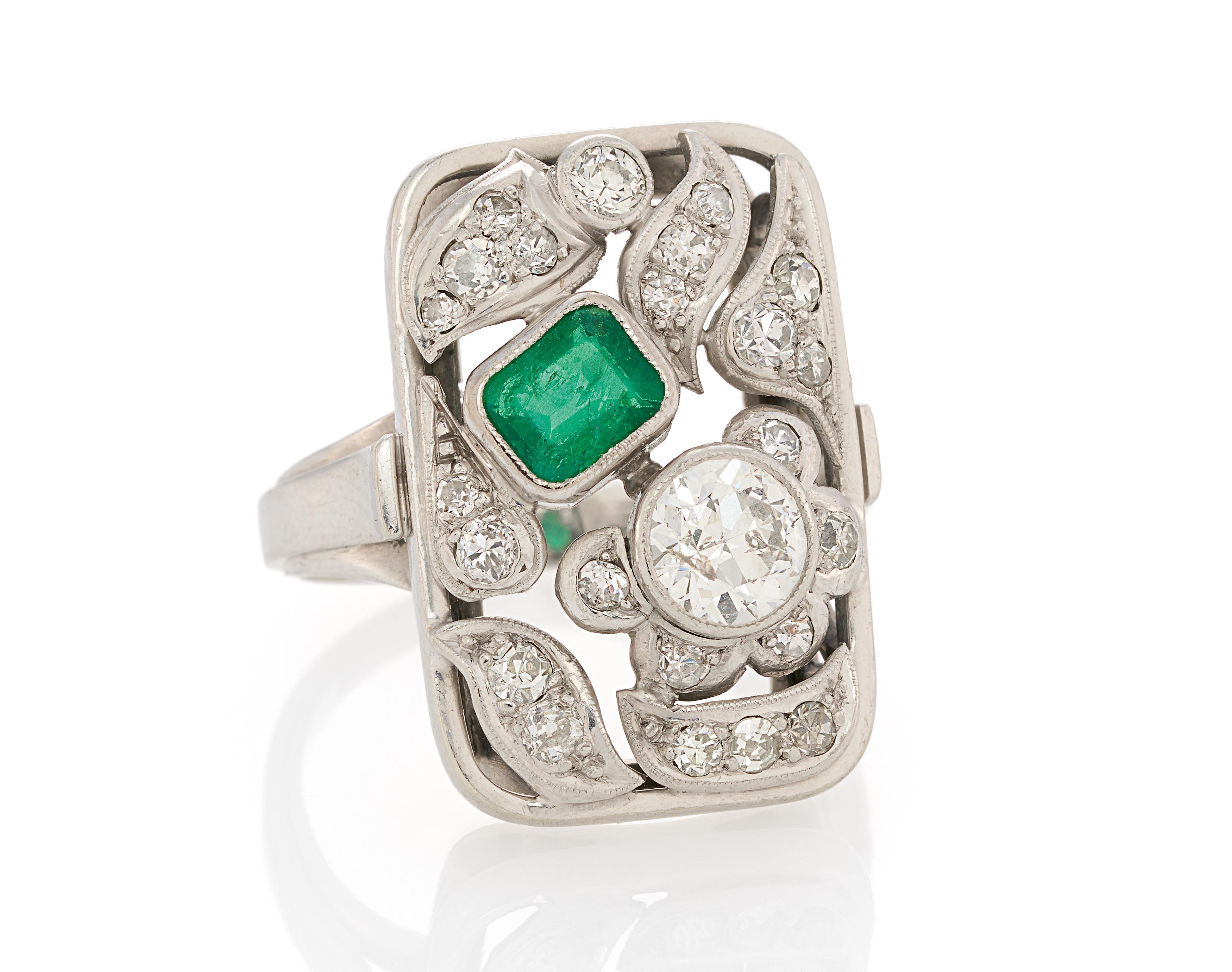 Edelsteine: 1 Smaragd im Emerald-Schliff ca. 0,4 ct.