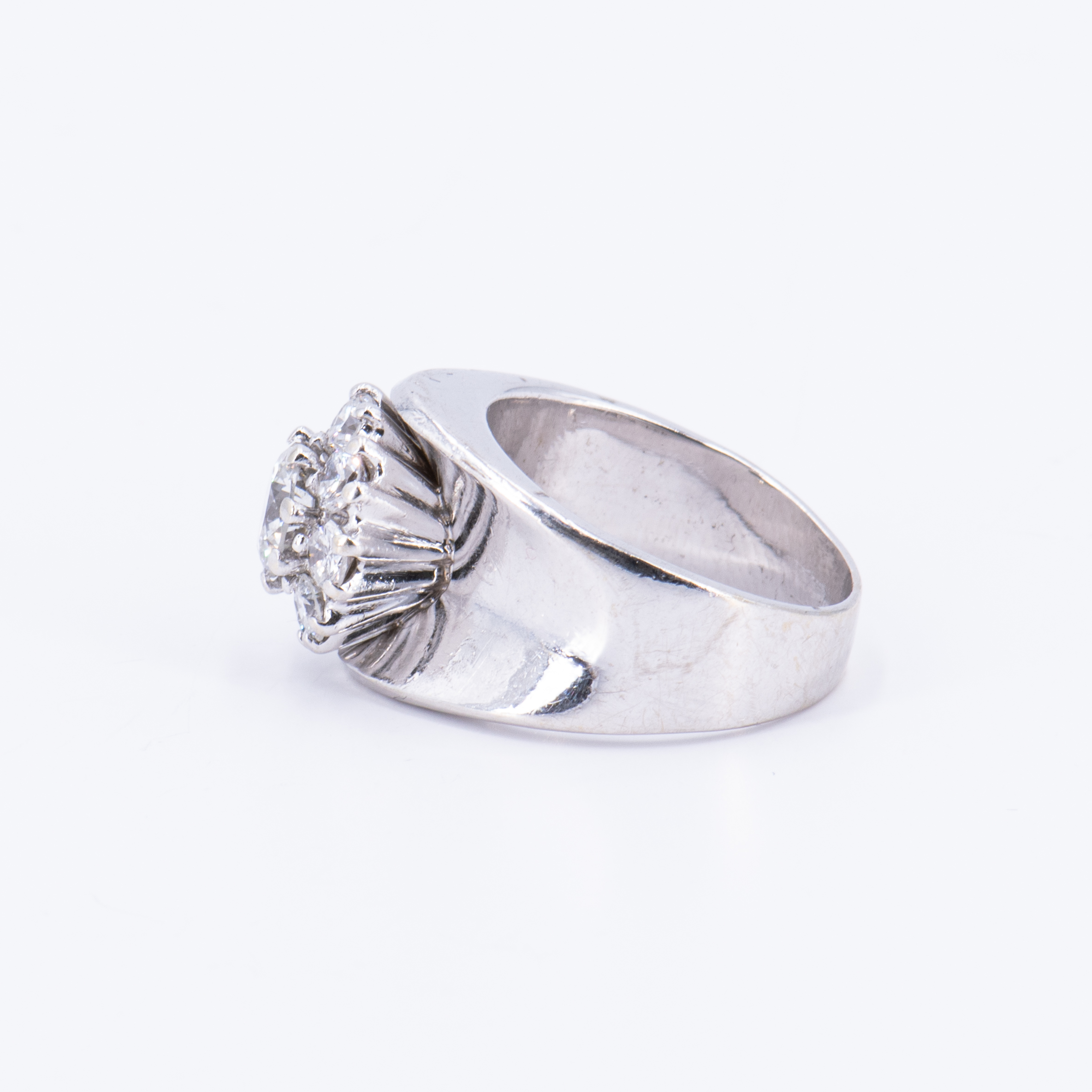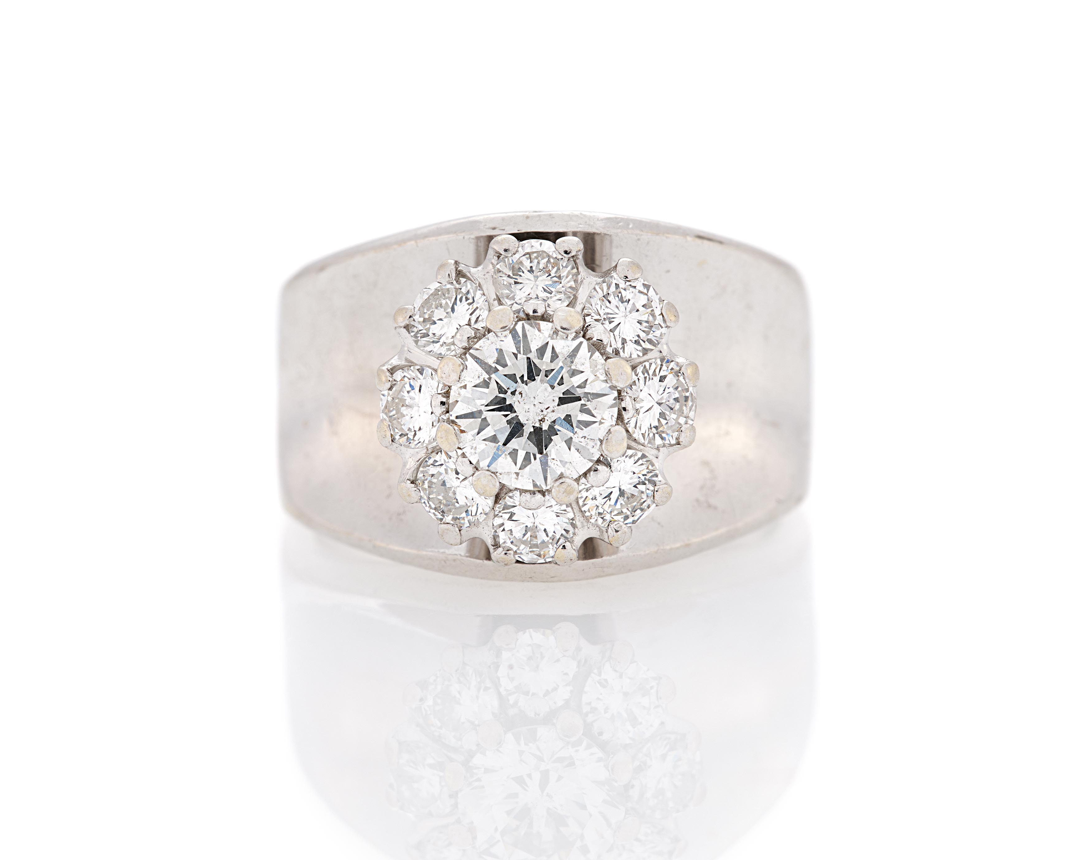 Diamanten: 1 Brillant ca. 0,65 ct., 8 Brillanten zus. ca. 0,64 ct.
