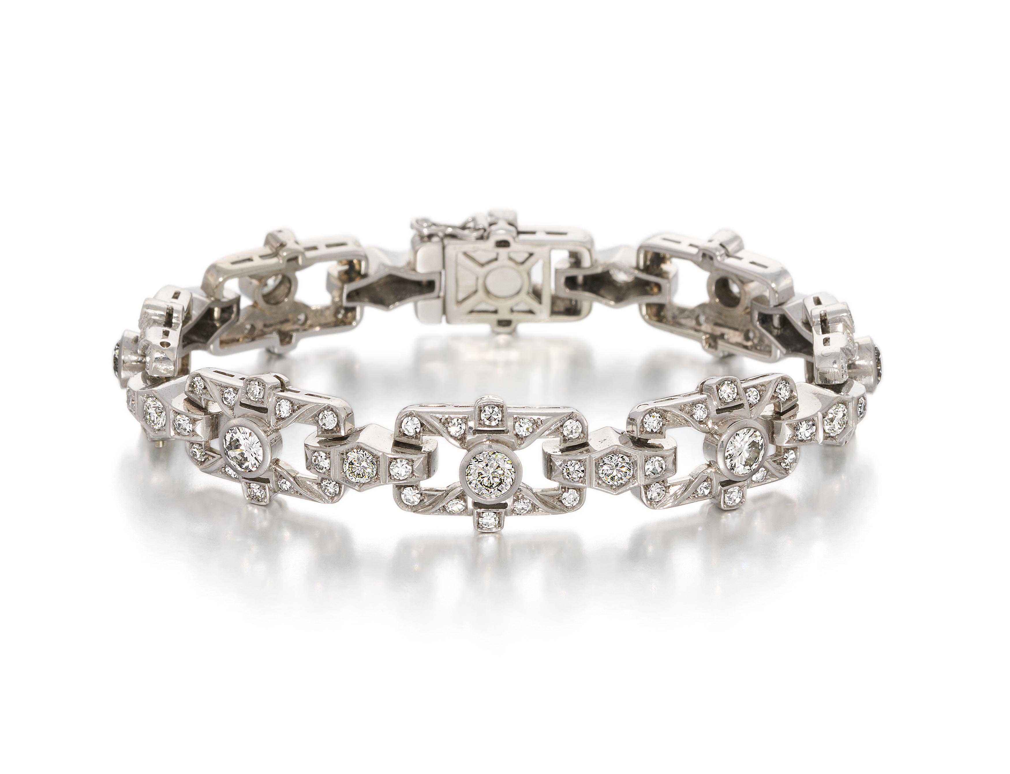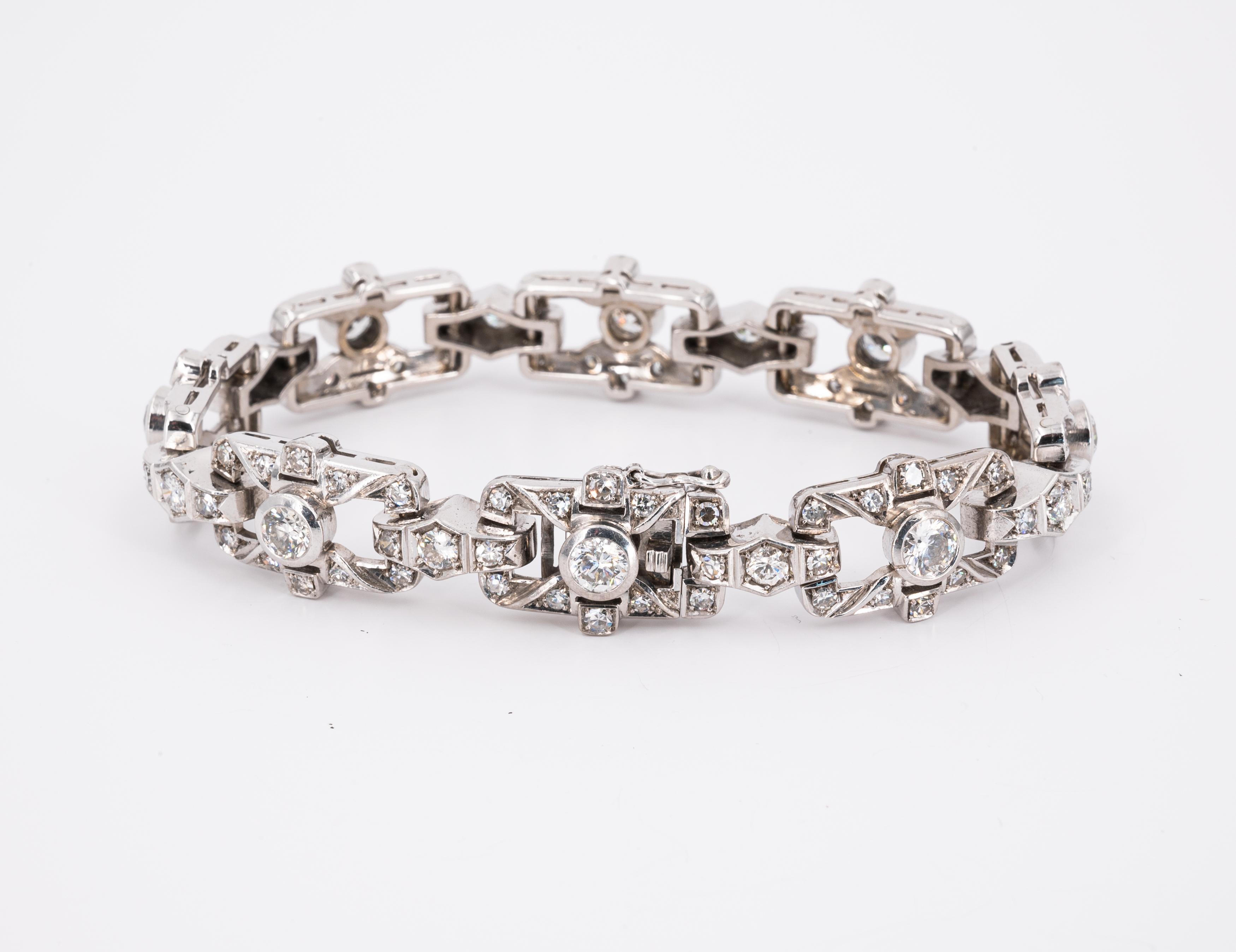 Diamanten: Ca. 112 Brillanten zus. ca. 5,8 ct., K-M/SI-P.