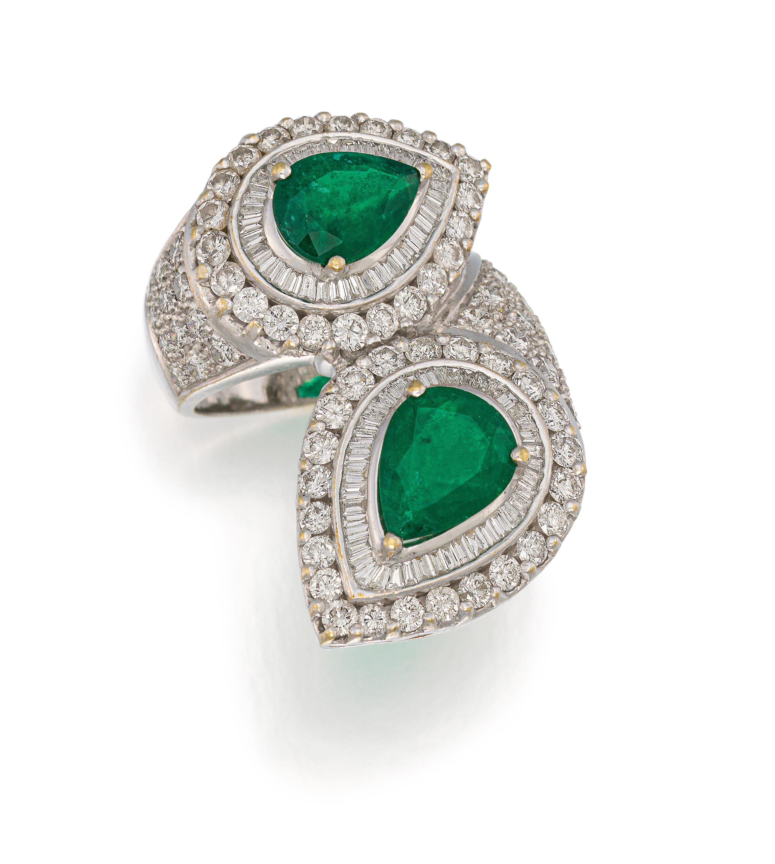 Edelsteine: 2 Smaragde im Tropfen-Schliff zus. ca. 3,8 ct.
