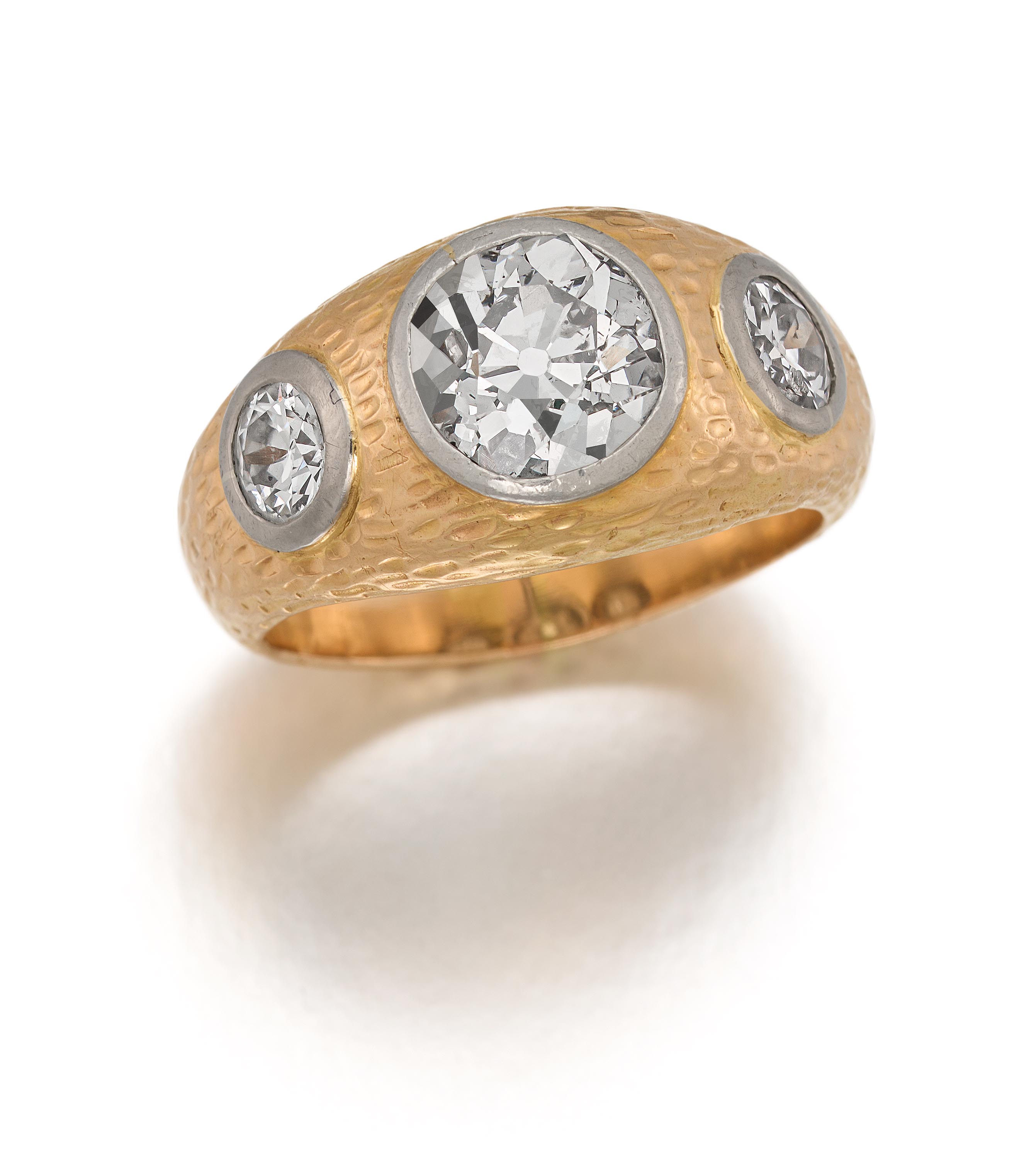 Diamanten: 1 Diamant im Alt-Schliff ca. 1,8 ct. M/P, 2 Brillanten zus. ca. 0,6 ct. K-M/SI2-P.