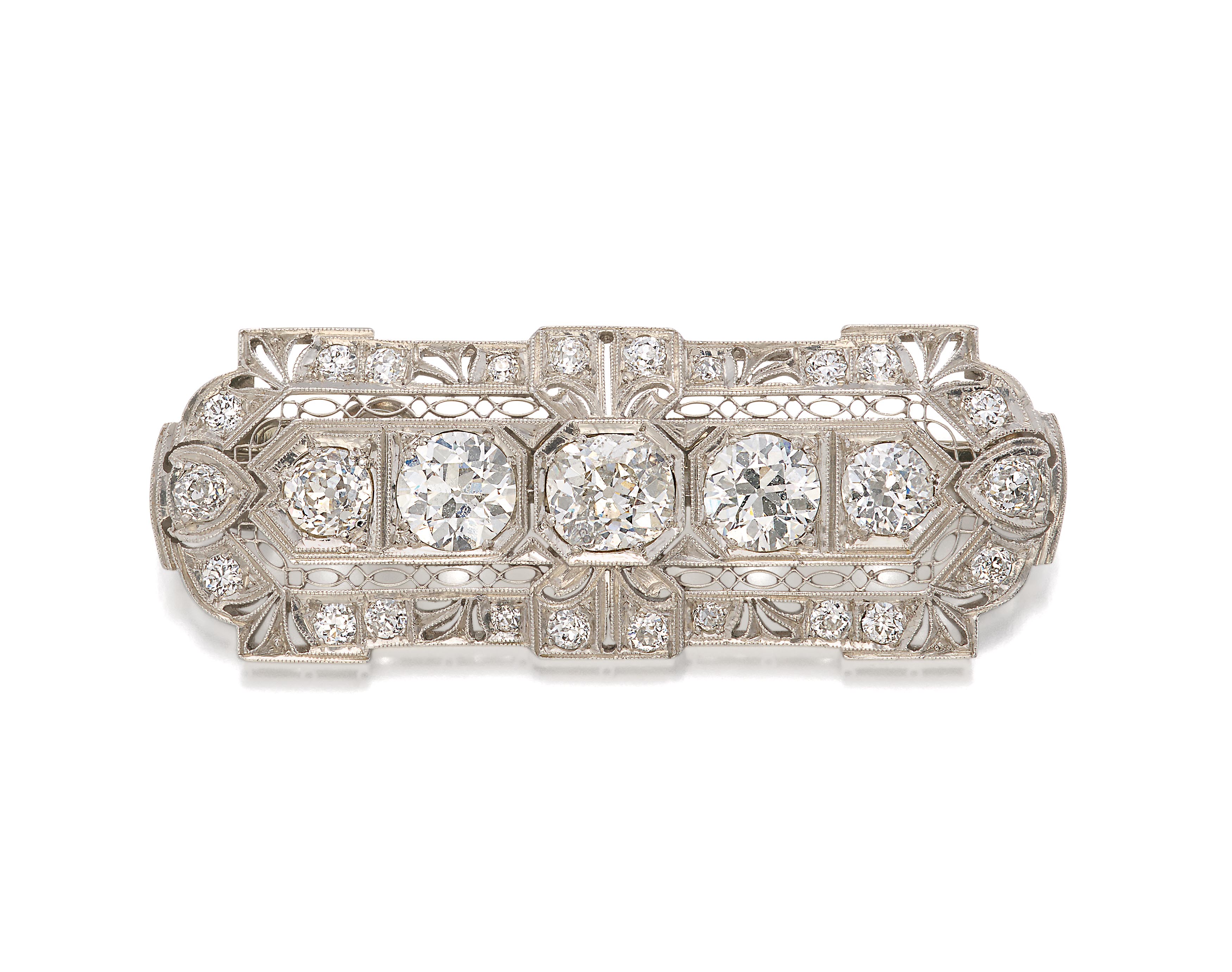 Diamanten: 5 Diamanten im Alt-Schliff zus. ca. 3,7 ct., 22 Diamanten im Alt-Schliff zus. ca. 0,8 ct., L-N/VS2-SI2, Mittelstein P.