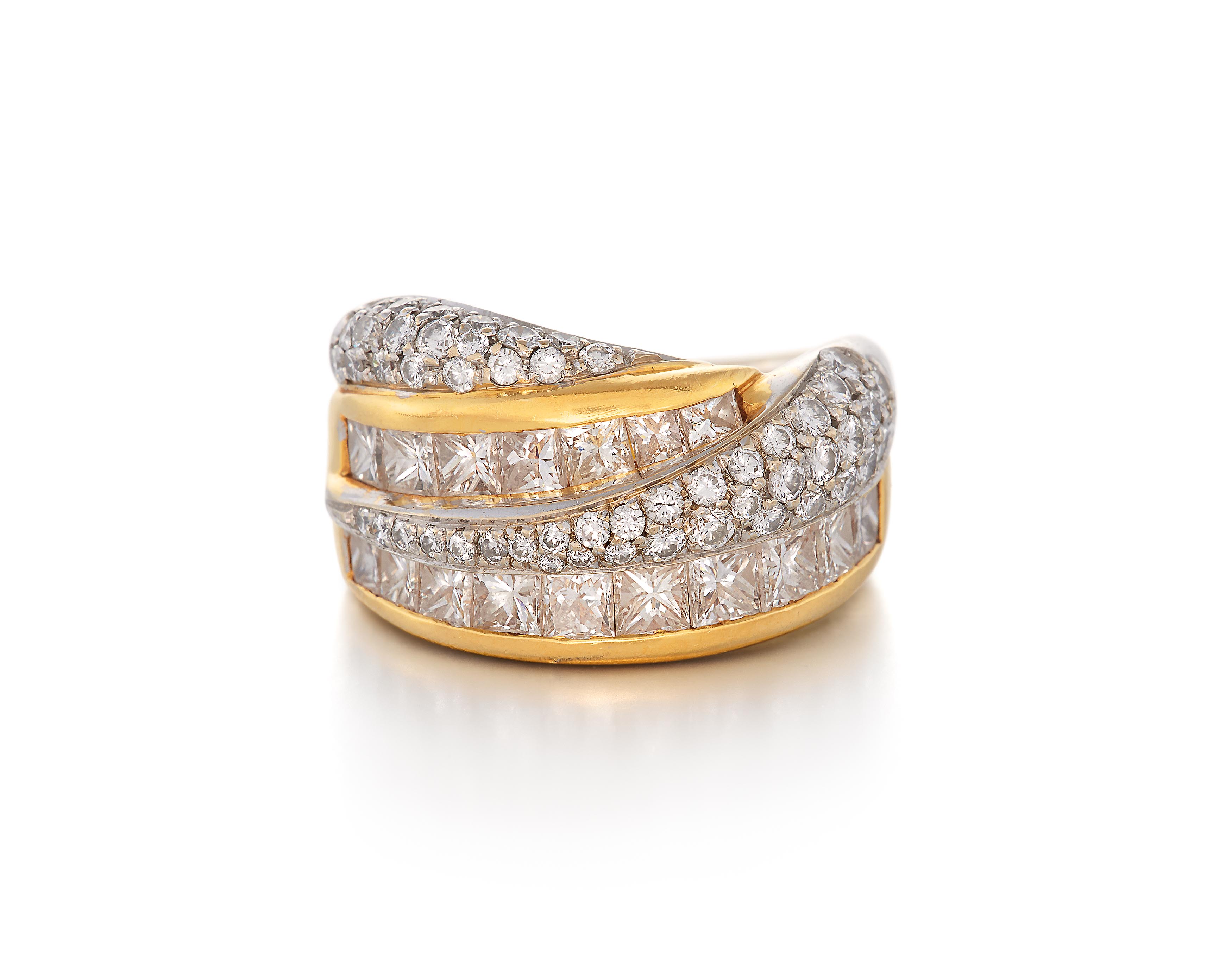 Diamanten: 17 Diamanten im Prinzess-Schliff zus. ca. 2,2 ct., 50 Brillanten zus. ca. 0,8 ct., I-J/VS.
