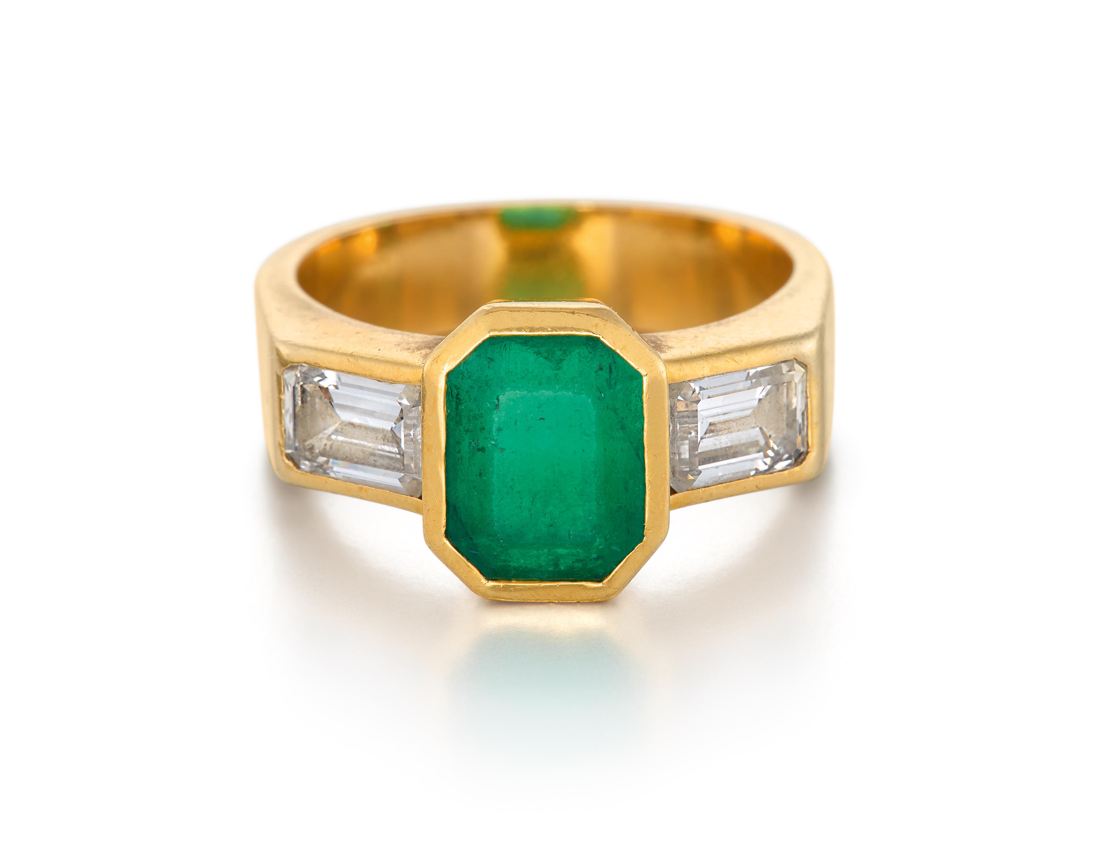 Edelsteine: 1 Smaragd im Emerald-Schliff zus. ca. 1,6 ct.