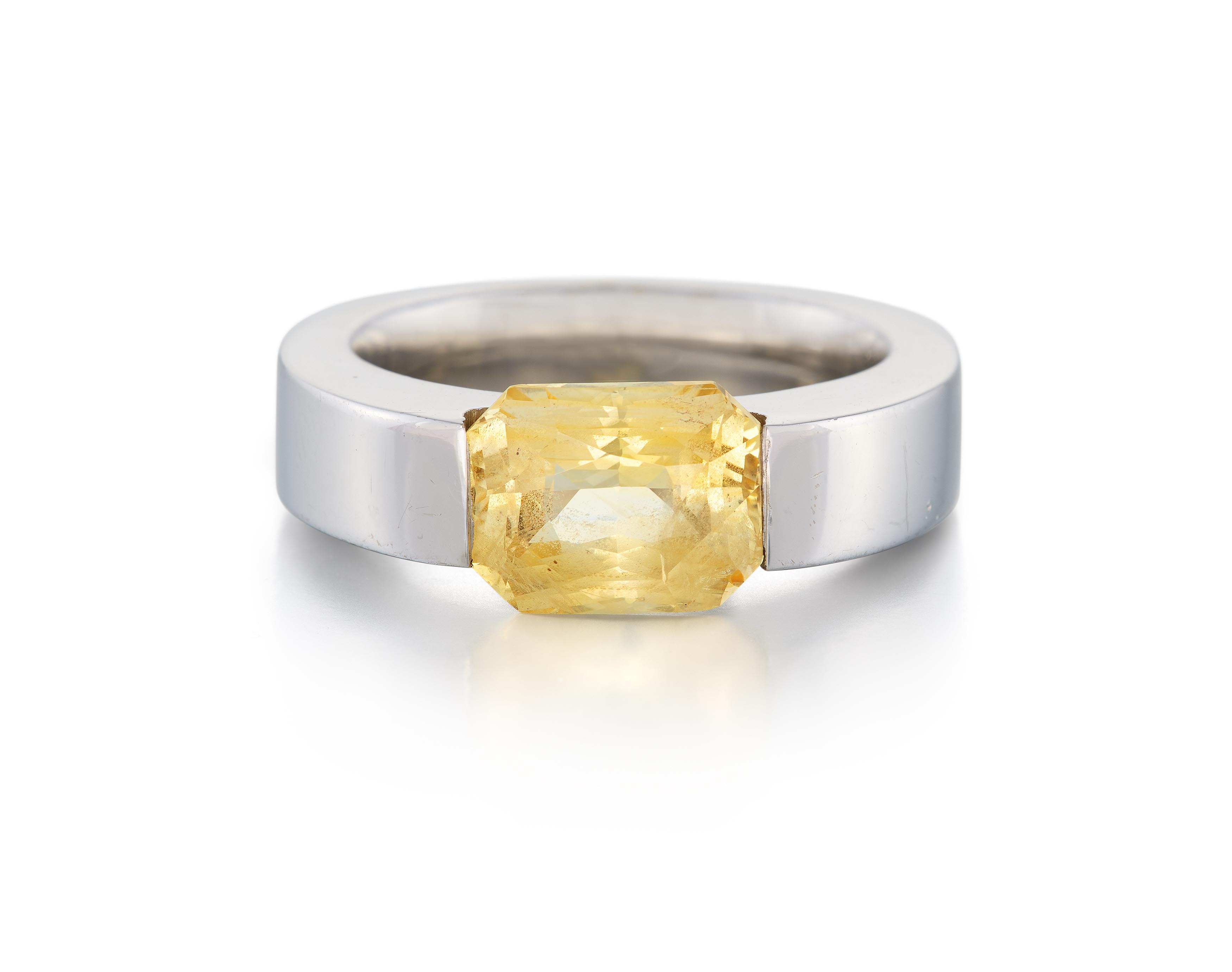 Edelsteine: 1 gelber Saphir im Kissen-Schliff, oktogonal, ca. 5,8 ct.