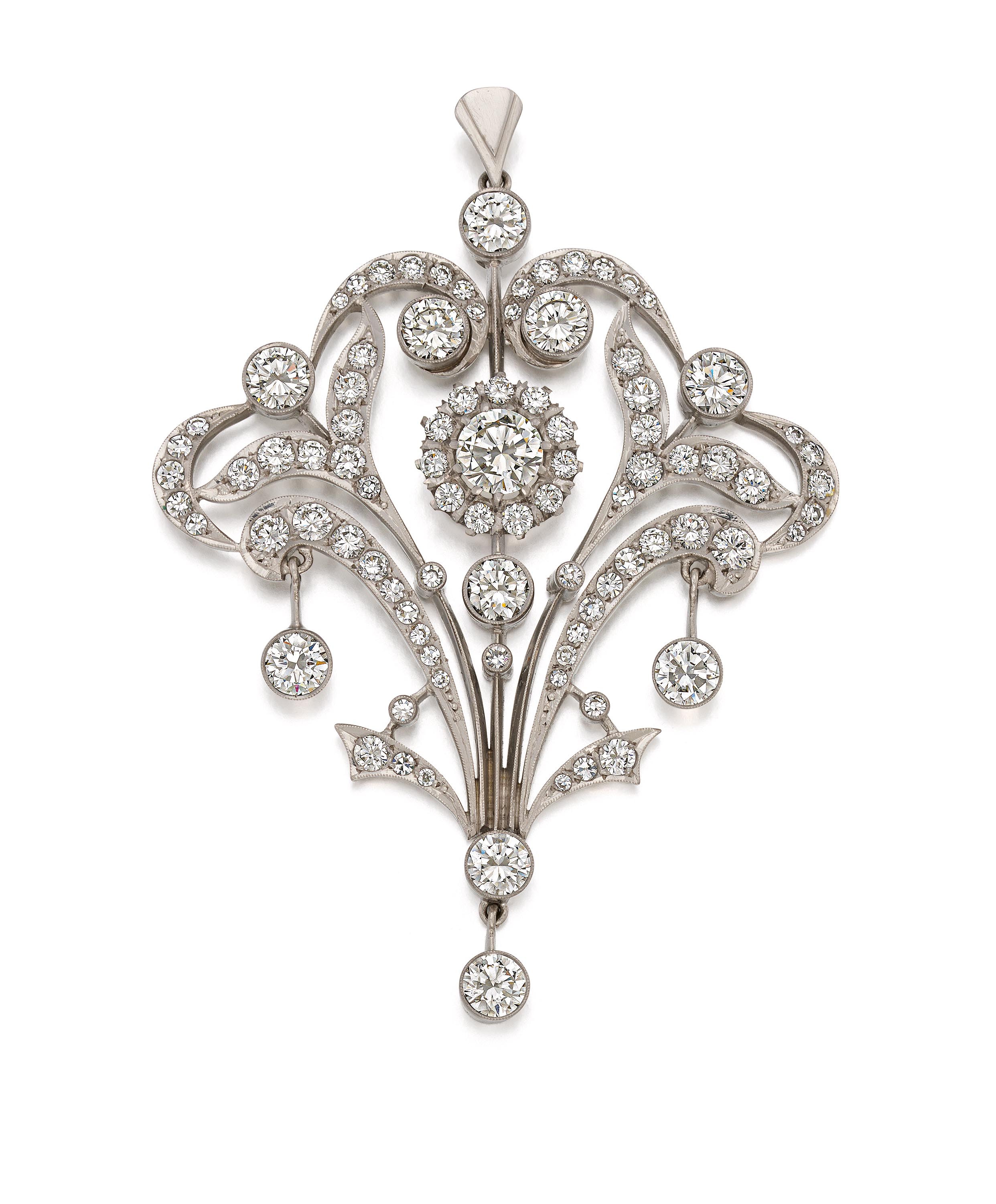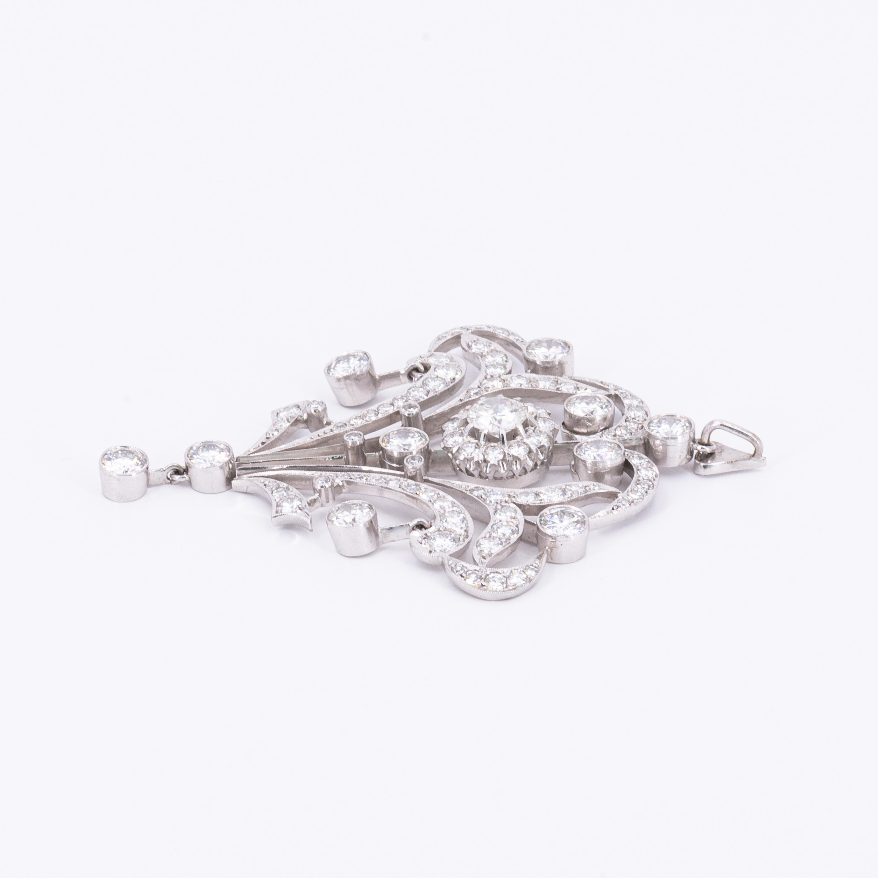 Diamanten: 1 Brillant ca. 1,1 ct., H/VS2, 10 Brillanten zus. ca. 4,8 ct., 64 Brillanten zus. ca. 1,9 ct., H-J/VS1-SI2.