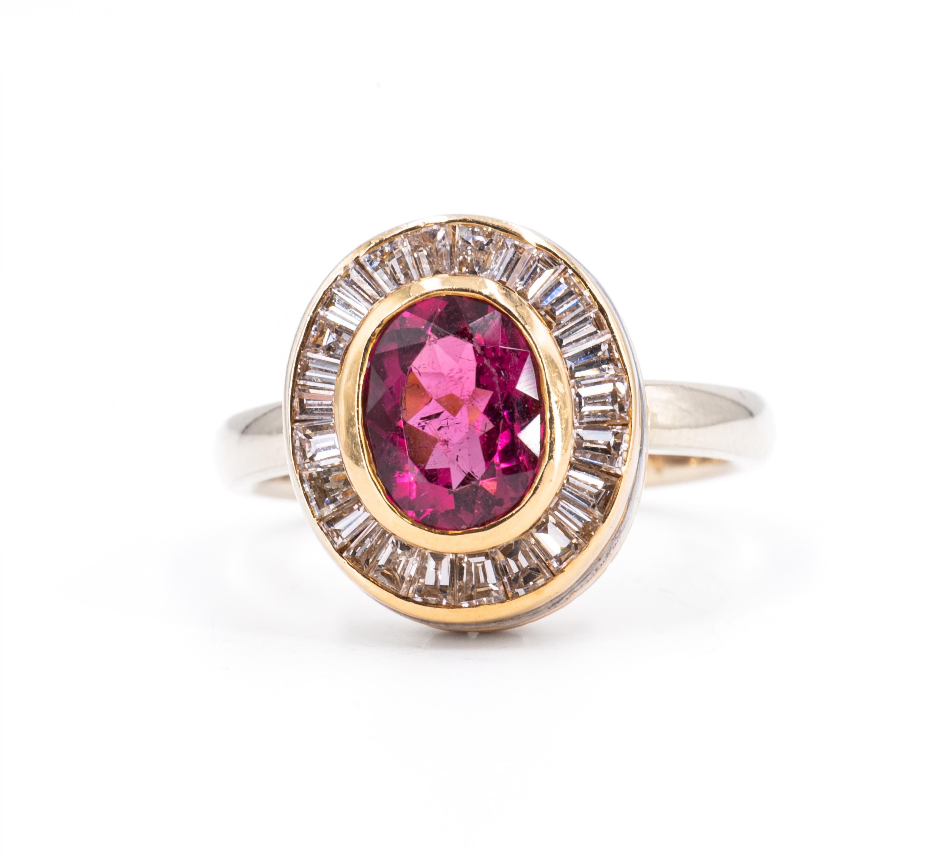 Edelsteine: 1 ovaler, facettierter Turmalin, intensiv rosa farben, ca. 1,9 ct.