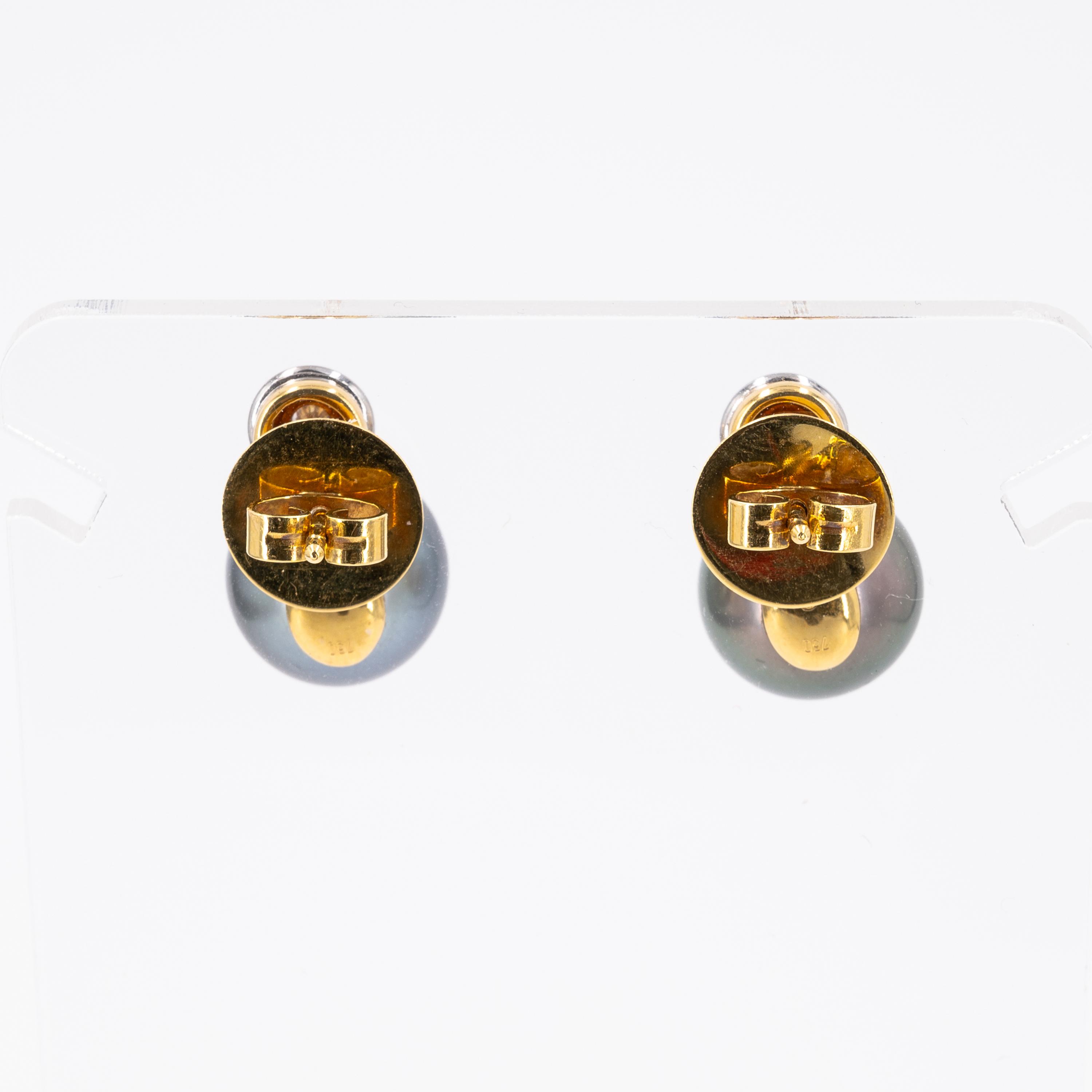 Org. Substanzen: 2 Tahiti-Zuchtperlen Ø ca. 11,5 mm, anthrazit-, leicht violett-farben.