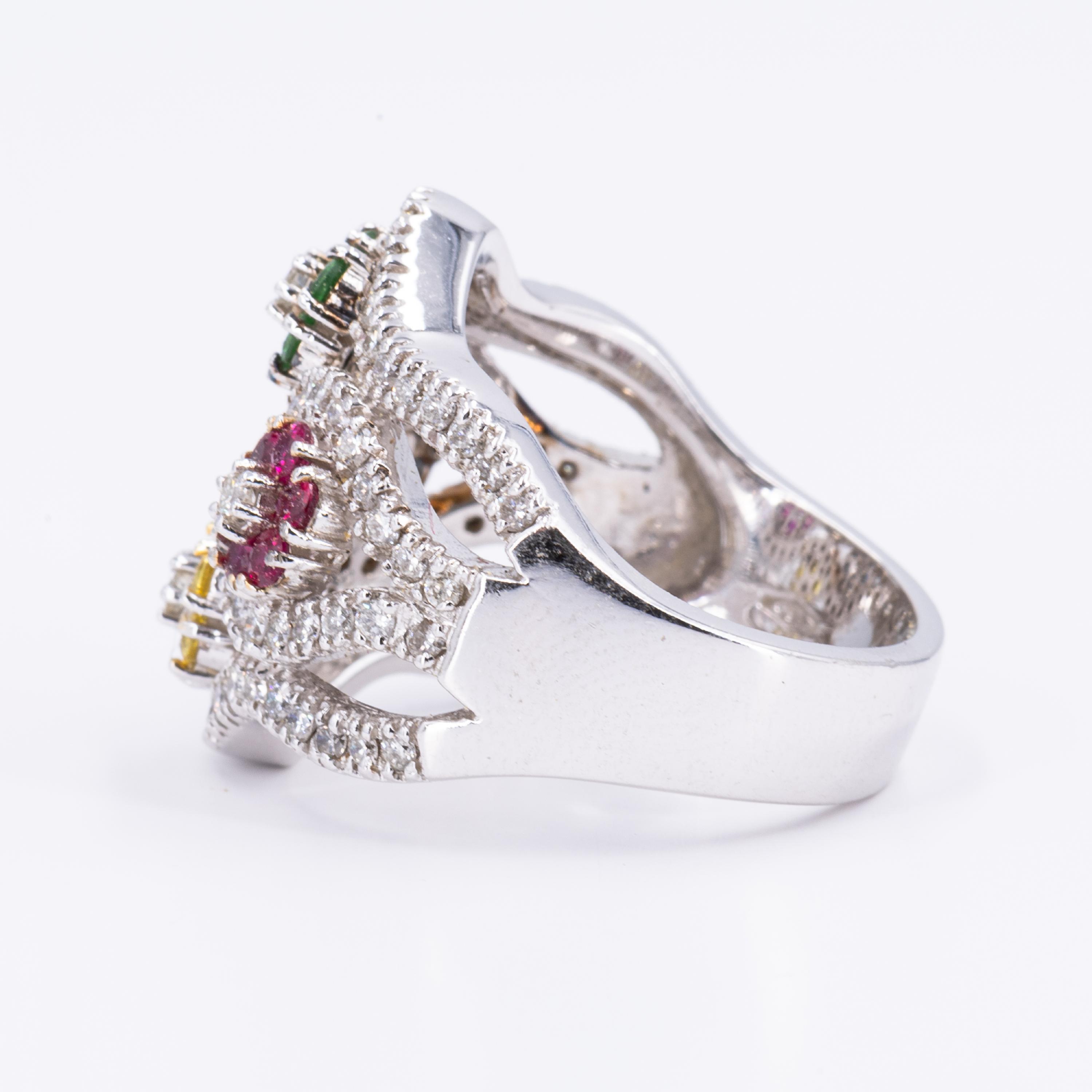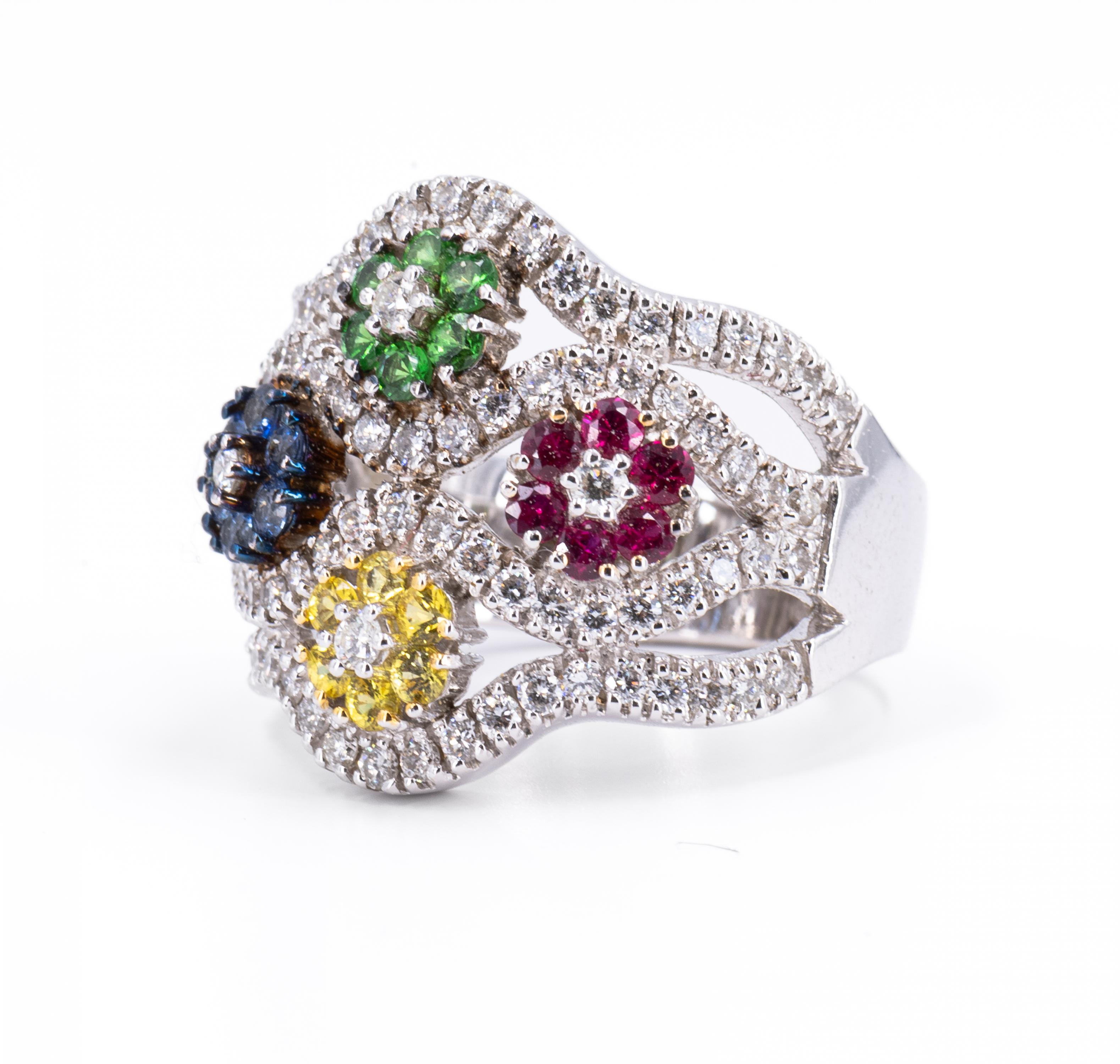 Edelsteine: 24 runde, facettierte Farbsteine, rot, blau, grün und rot, Ø ca. 2,0 mm.