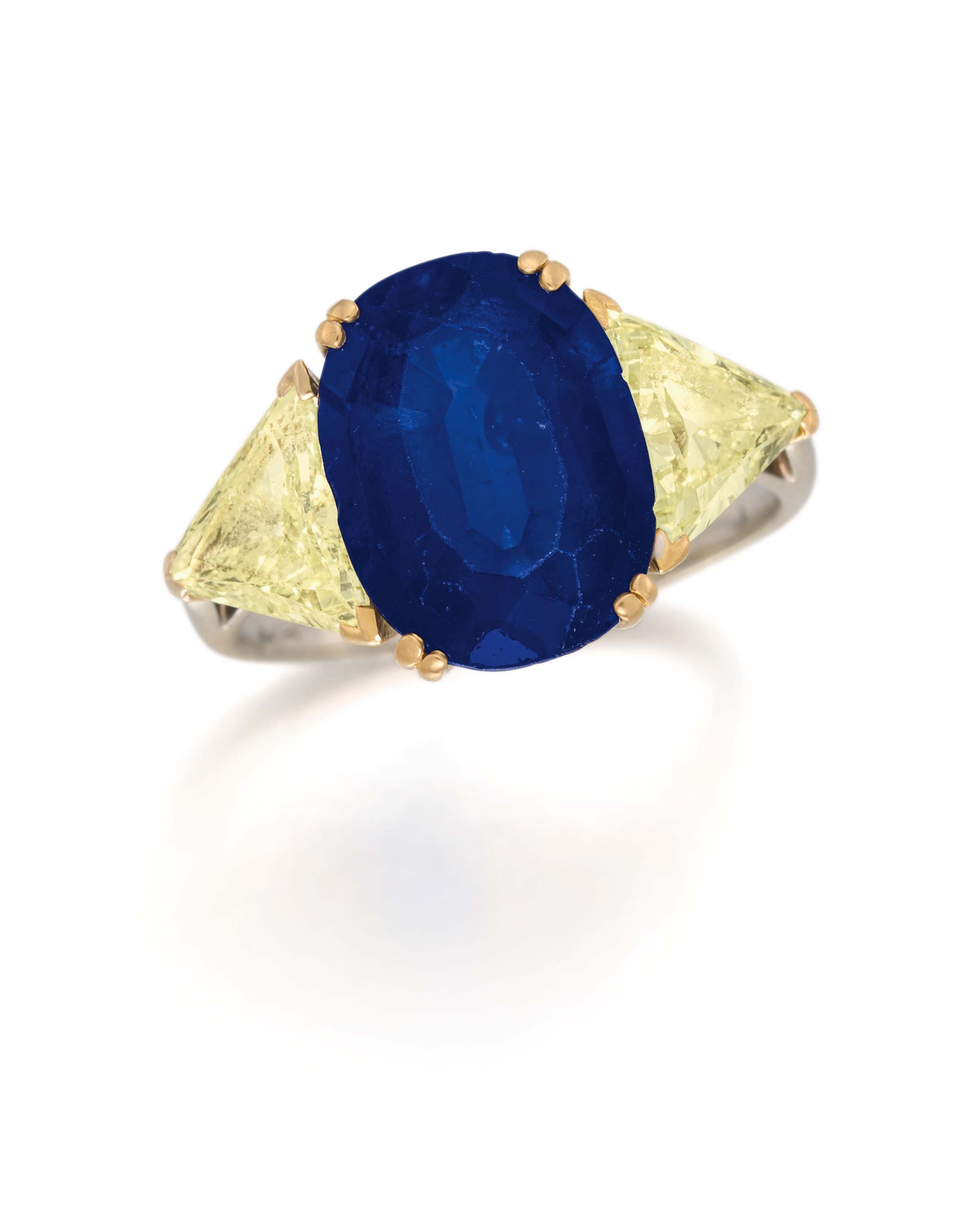 Edelsteine: 1 Saphir im gemischten Stern- und Treppen-Schliff, ca. 13,13 x 9,90 x 5,20 mm, ca. 5,1 ct., erhitzt.