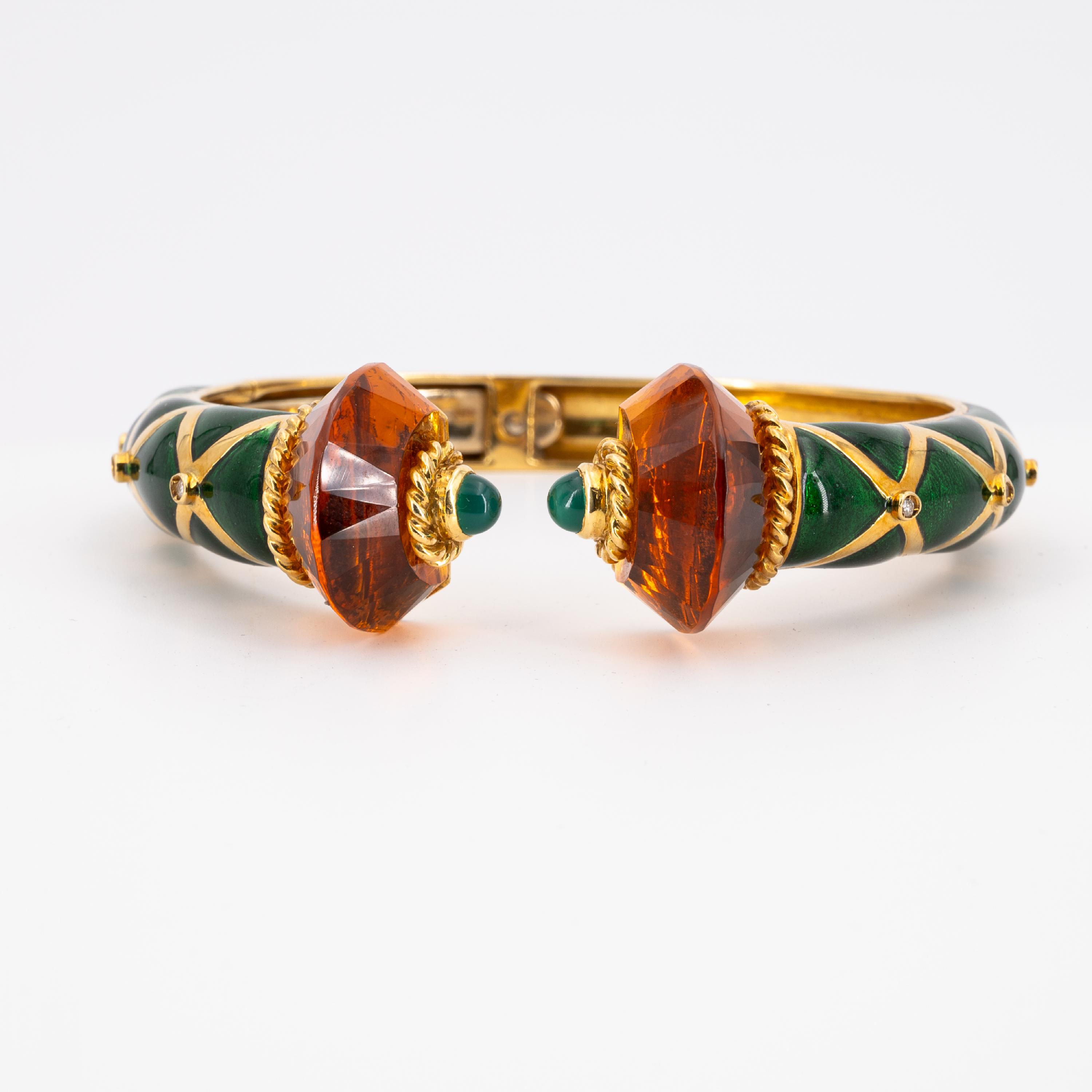 Edelsteine: 4 Citrine im Fancy-Cut ca. 18,2 x 8,9 mm, 4 grüne Farbstein-Cabochons Ø ca. 4,0 mm.