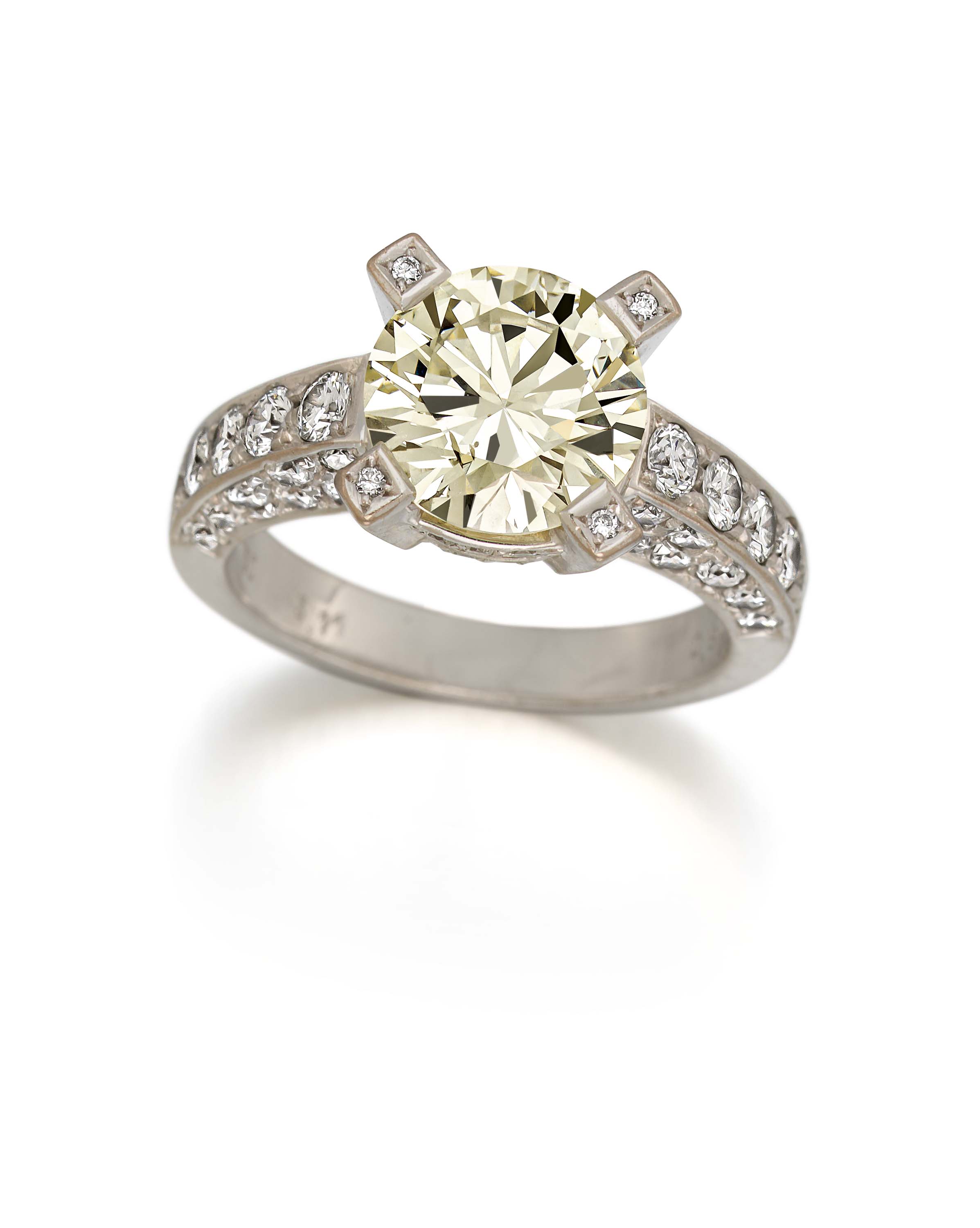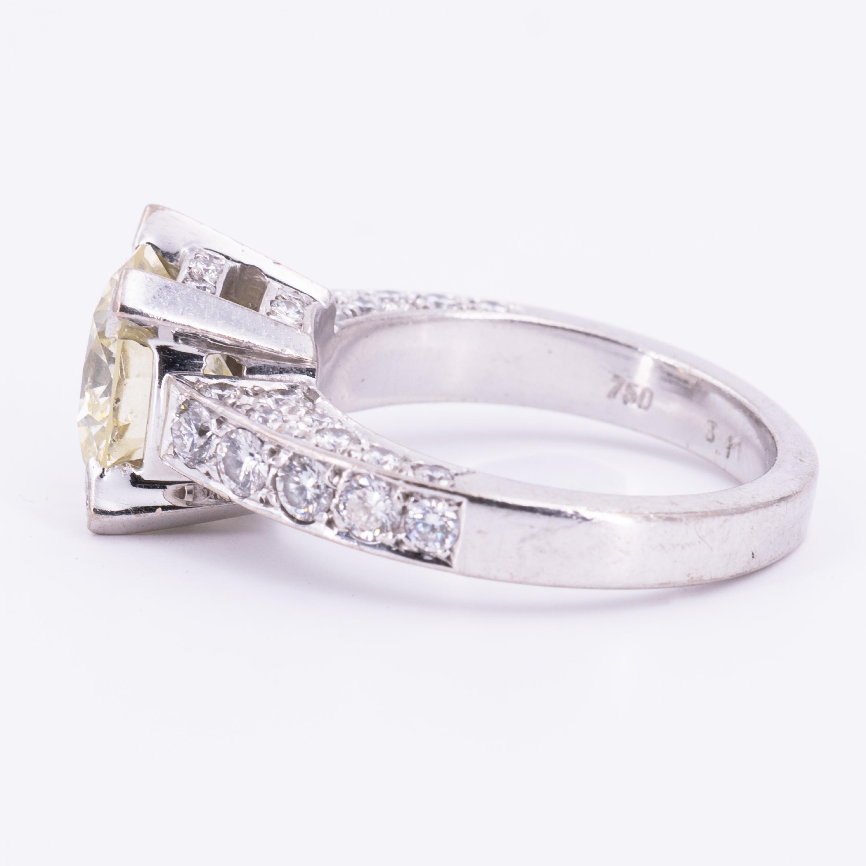 Diamanten: 1 Brillant ca. 3,1 ct., M-O/P2, 53 Brillanten zus. ca. 0,8 ct., H-J/SI-P.