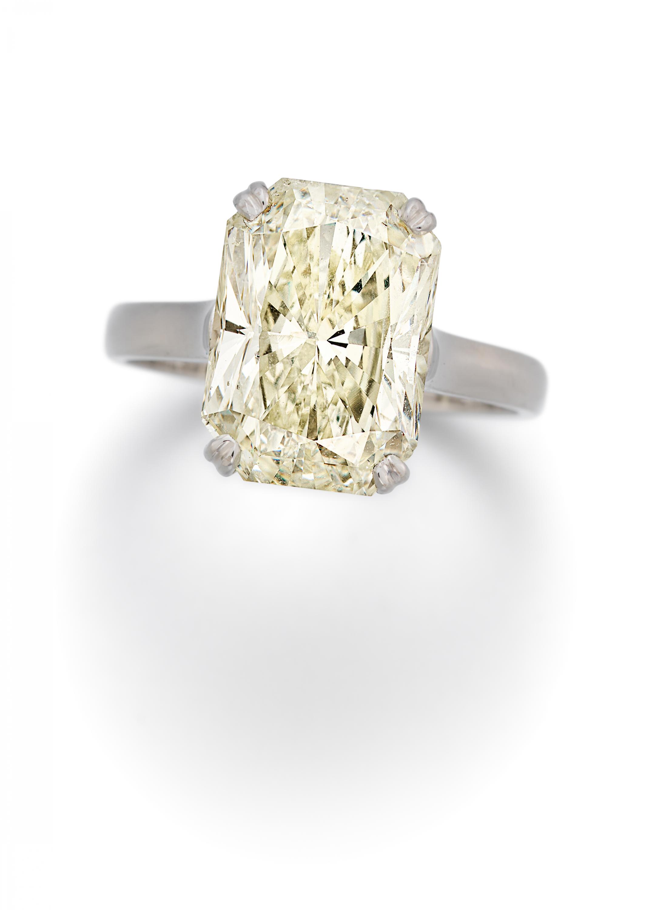 Diamanten: 1 Diamant im Radiant-Variations-Schliff 5,011 ct. very light Yellow (P-R)/SI2, Symmetrie: gut, Politur: sehr gut.