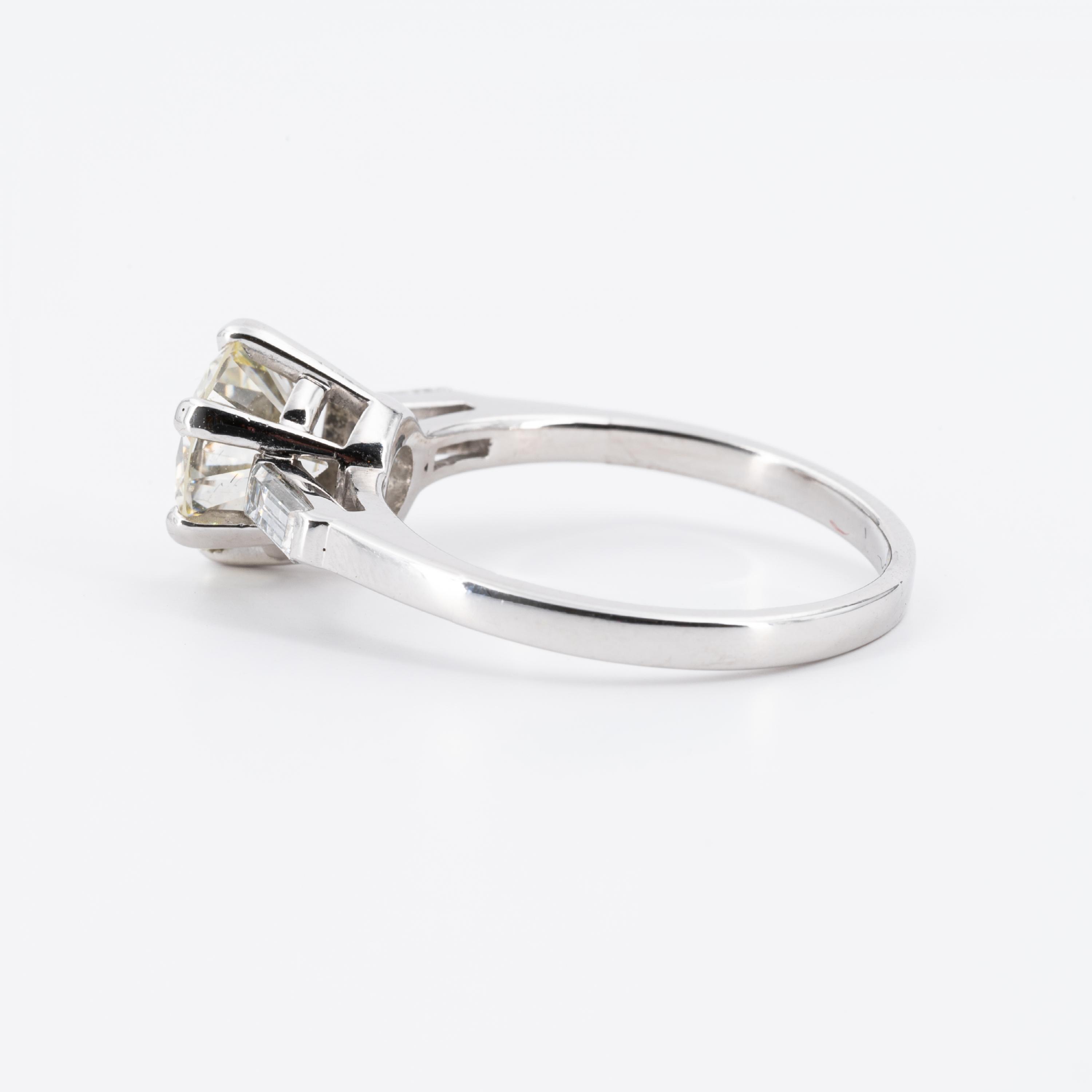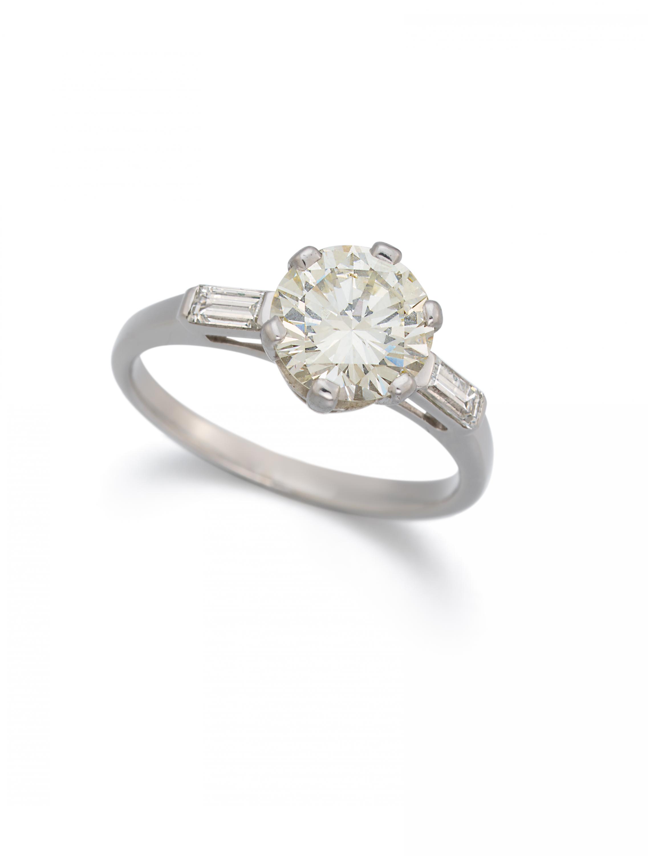 Diamanten: 1 Brillant ca. 2,0 ct., N-O/VS1, 2 Diamanten im Baguette-Schliff zus. ca. 0,1 ct.
