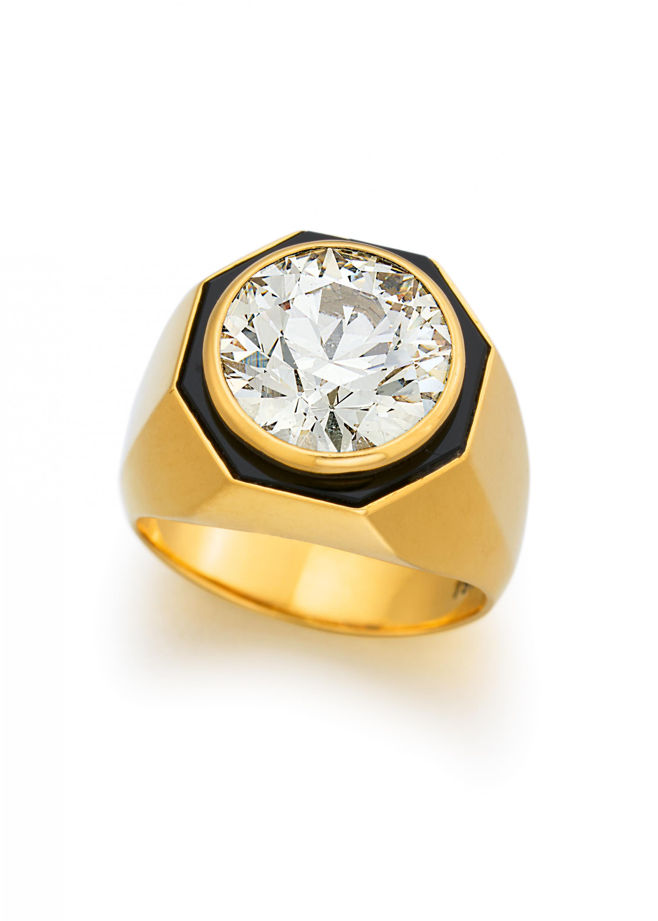 Edelsteine: Achteckiges Onyx-Element als Rahmen des Diamanten.