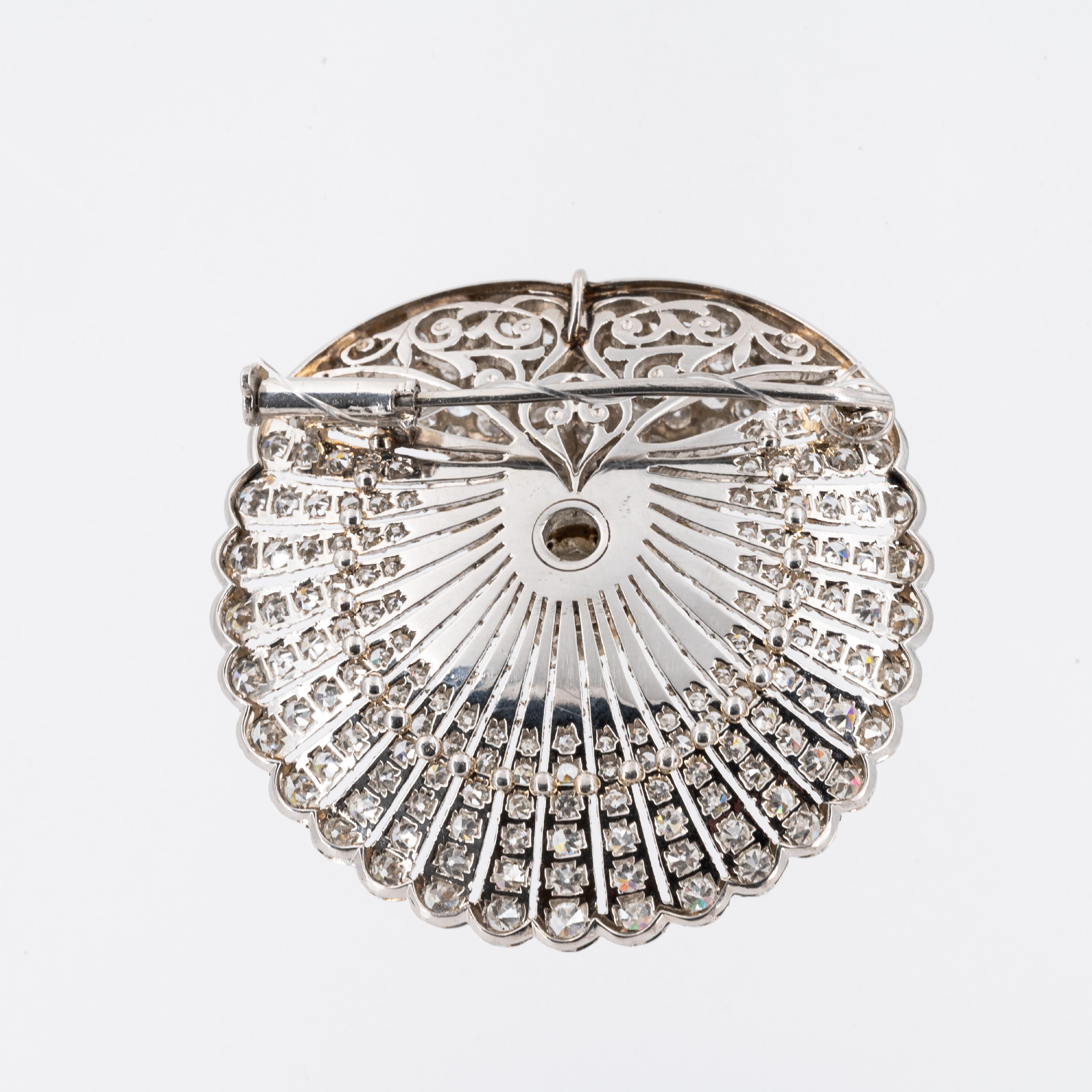 Diamanten: 1 Brillant ca. 0,9 ct. M/SI2, ca. 200 Diamanten im Brillant- und Achtkant-Schliff zus. ca. 2,3 ct., J-L/SI.