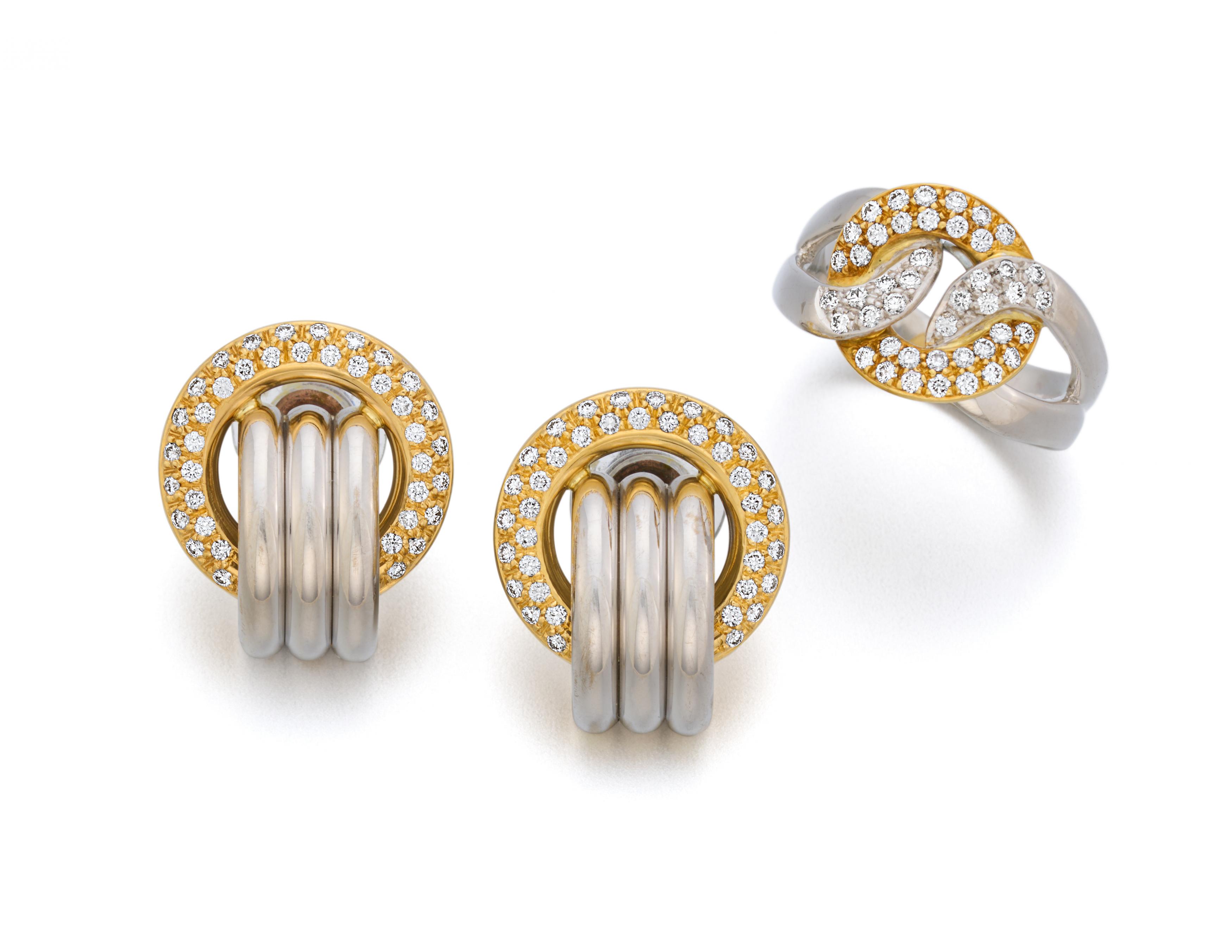 DIAMANT-SET: OHRSCHMUCK UND RING.