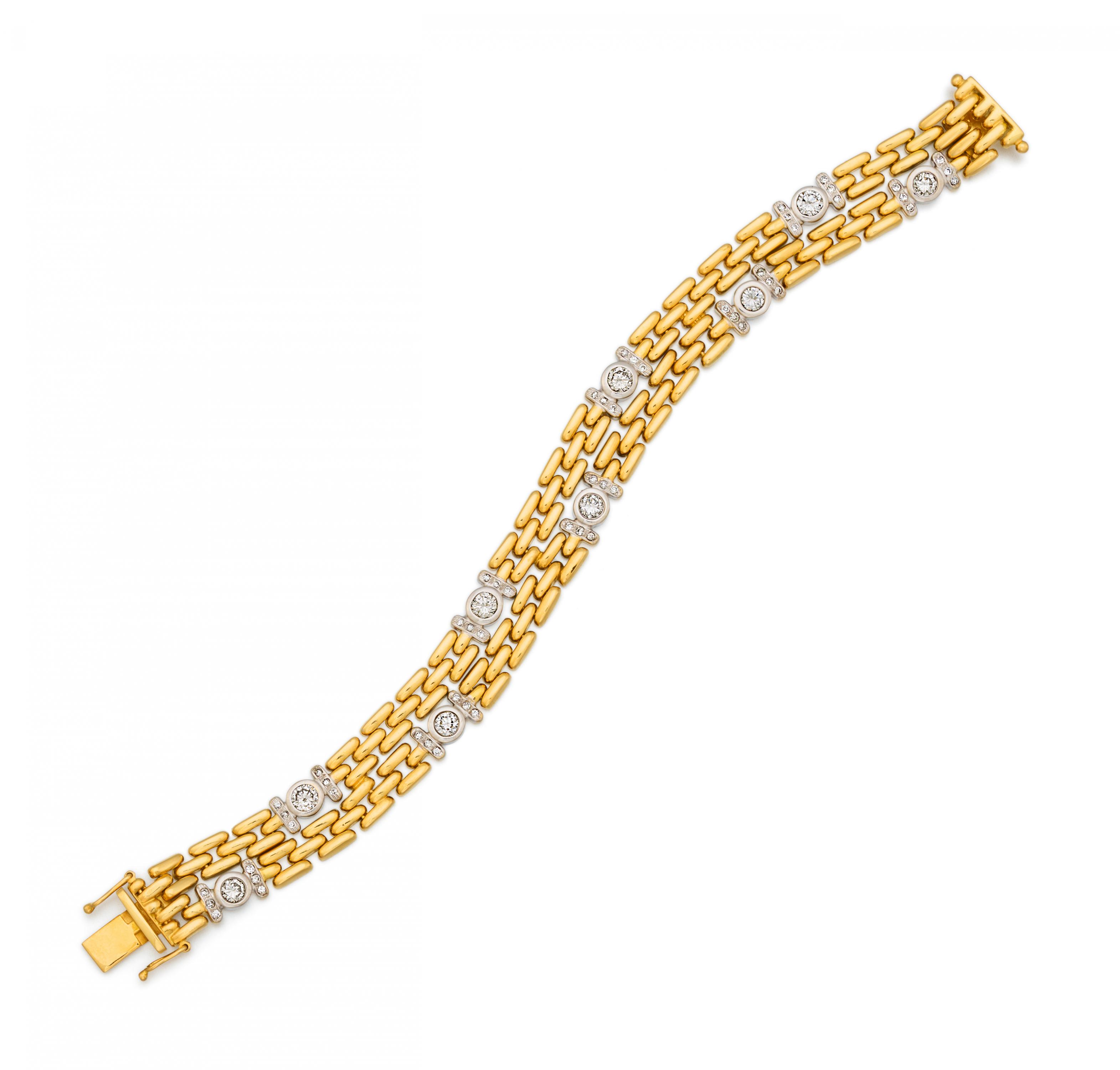 Diamanten: 9 Brillanten zus. ca. 1,9 ct., K-L/VS-SI1, 54 Brillanten zus. ca. 0,3 ct., L-M/SI.