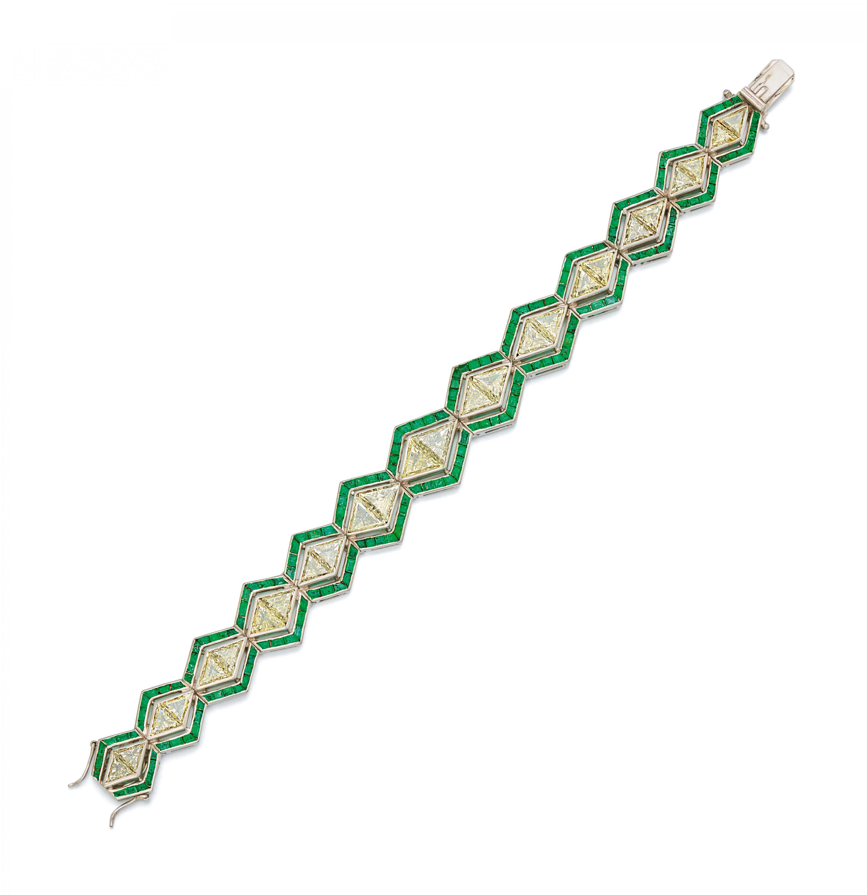 Diamanten: 24 Diamanten im Triangel-Schliff zus. ca. 11,5 ct., L-P/SI-P2, 2 Steine beschädigt.