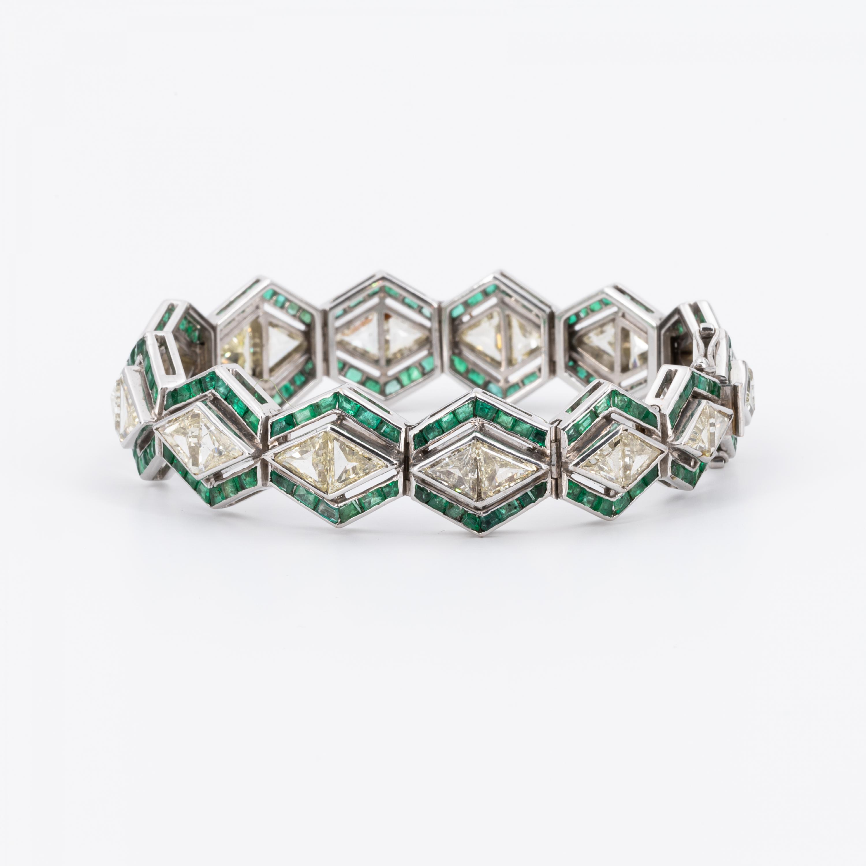 Edelsteine: Ca. 188 Smaragde im Karree-Schliff zus. ca. 5,6 ct., teilweise stark beschädigt.