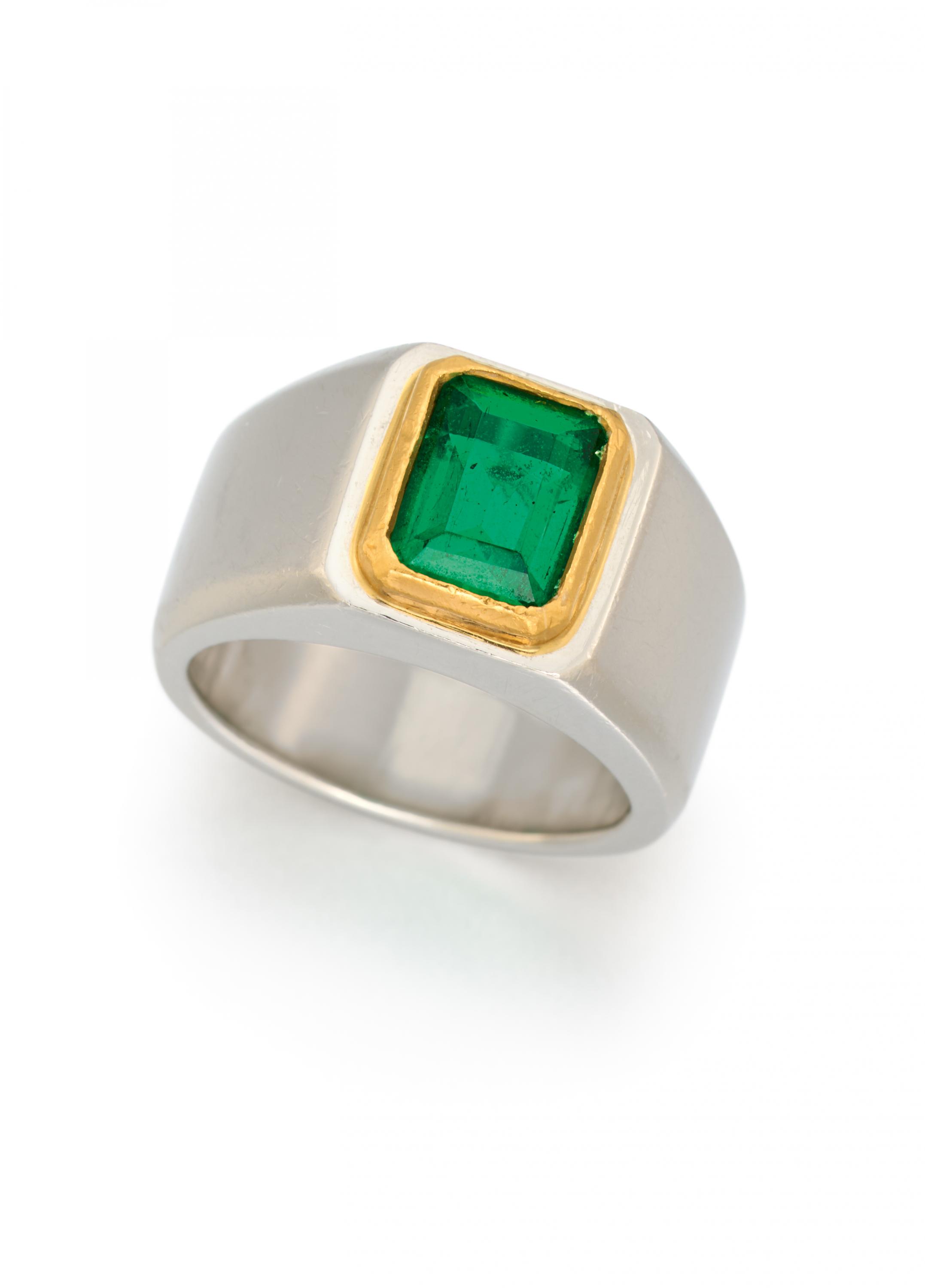 Edelsteine: 1 Smaragd im Emerald-Schliff ca. 1,1 ct., sehr schöne, intensive Farbe.