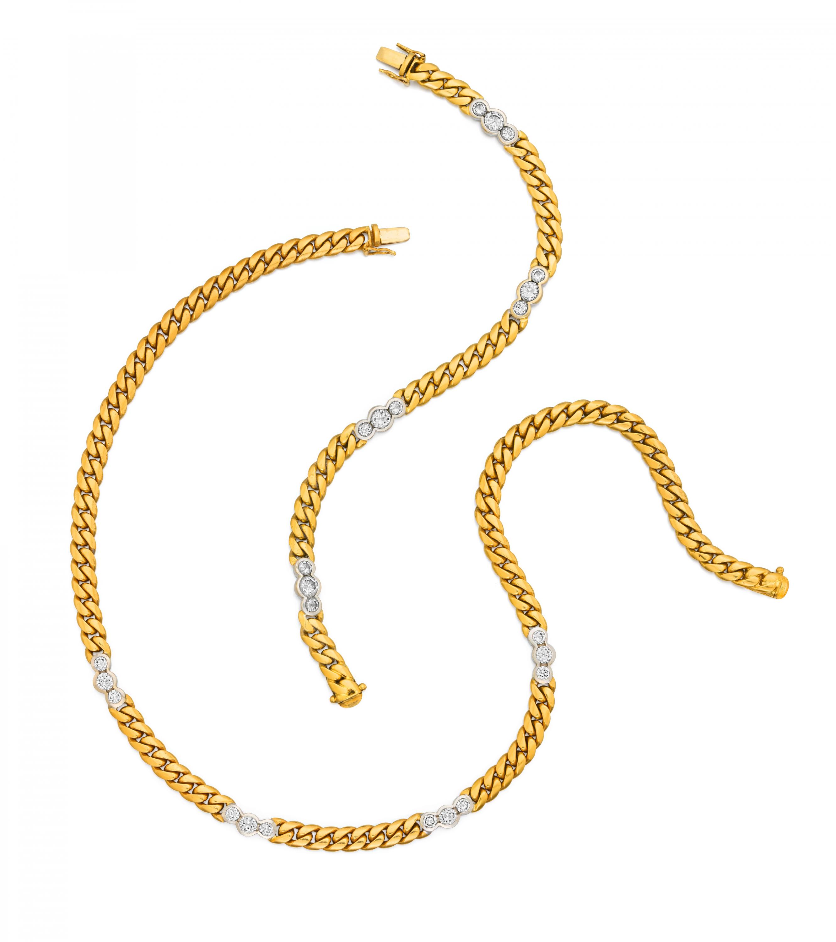 DIAMANT-PANZER-SET: BICOLOR-COLLIER UND ARMBAND.