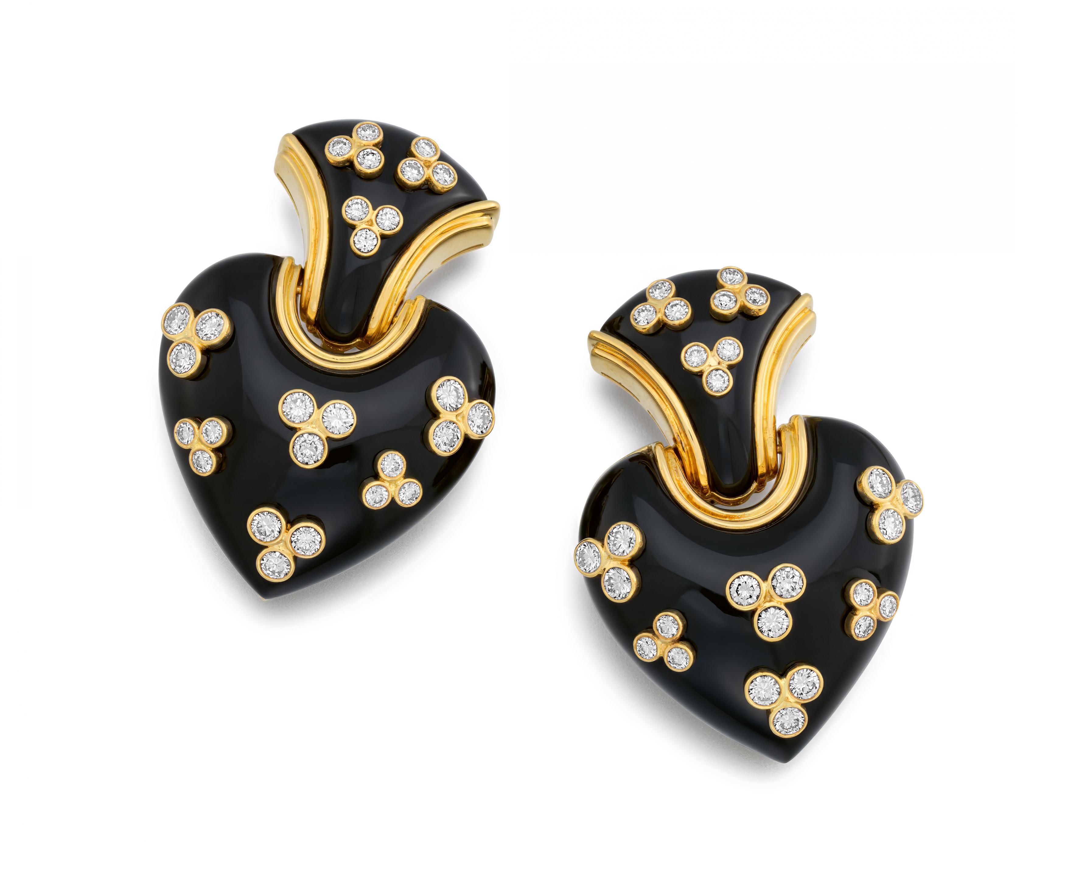 SKULPTURALE ONYX-DIAMANT-OHRCLIPS.