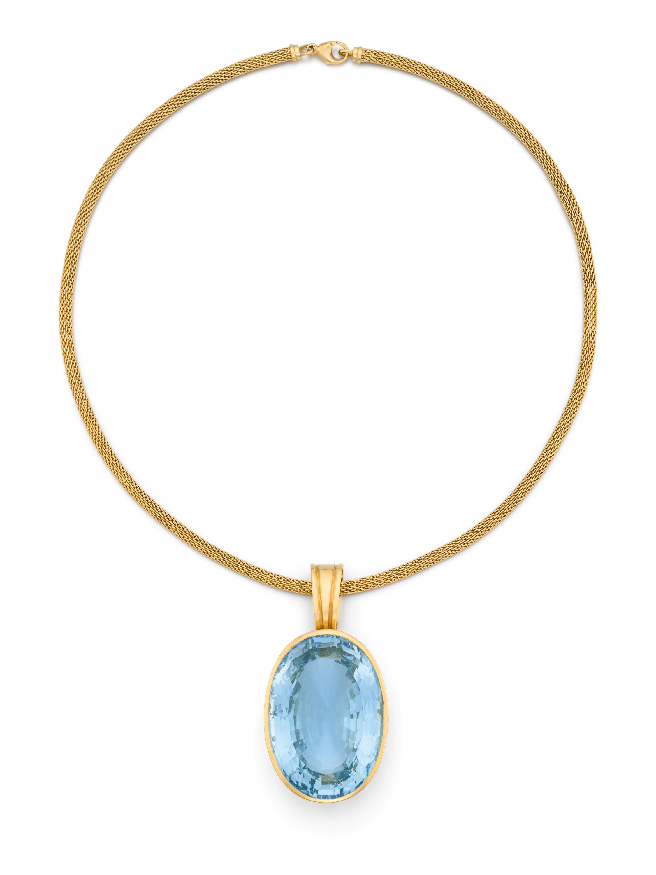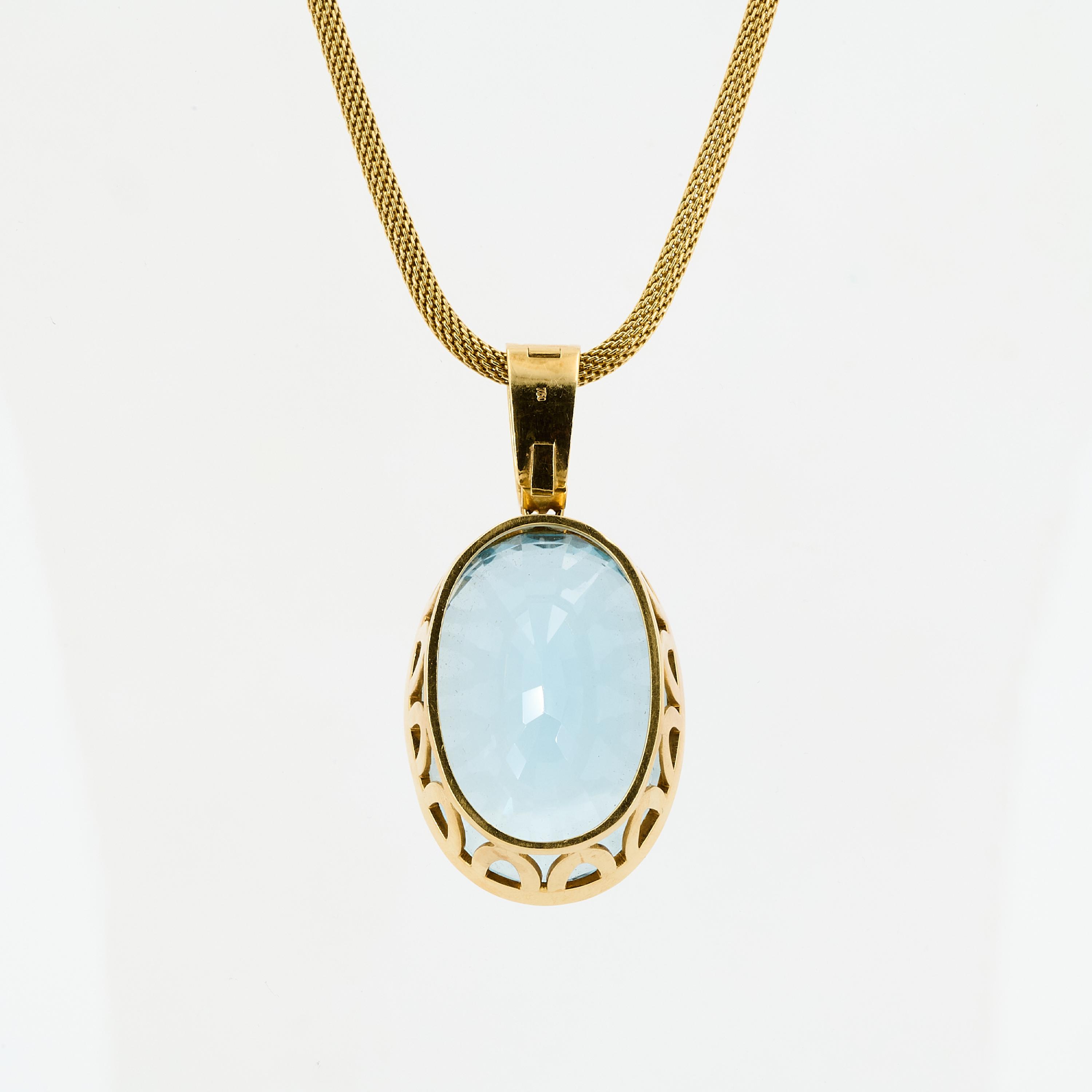 Beschreibung: Ein außergewöhnlicher Topas in hellem "skyblue" in einer Goldfassung mit klarer