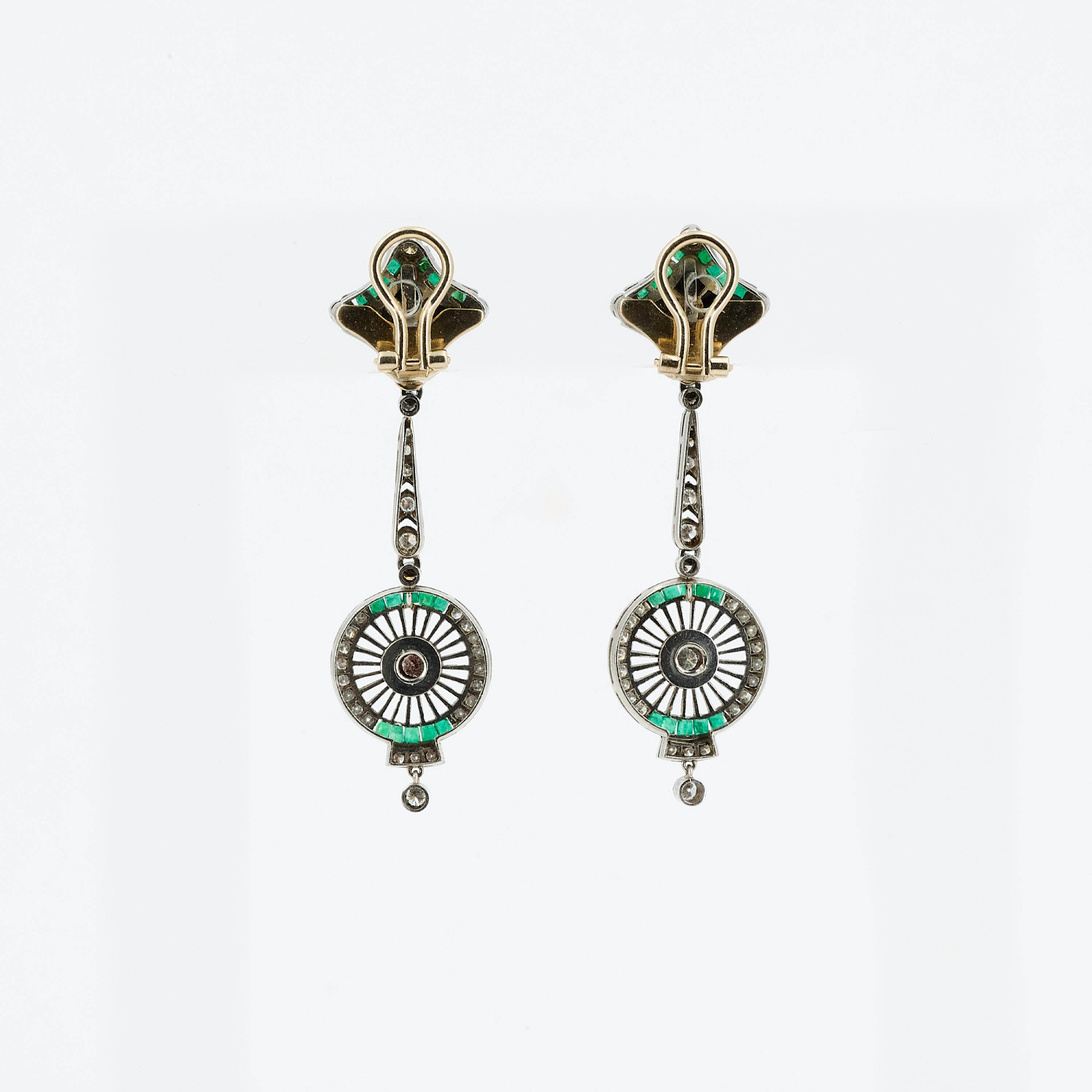 Edelsteine: 50 Smaragde im Karree-Schliff ca. 1,0 x 1,2 mm, 4 Onyx Elemente.