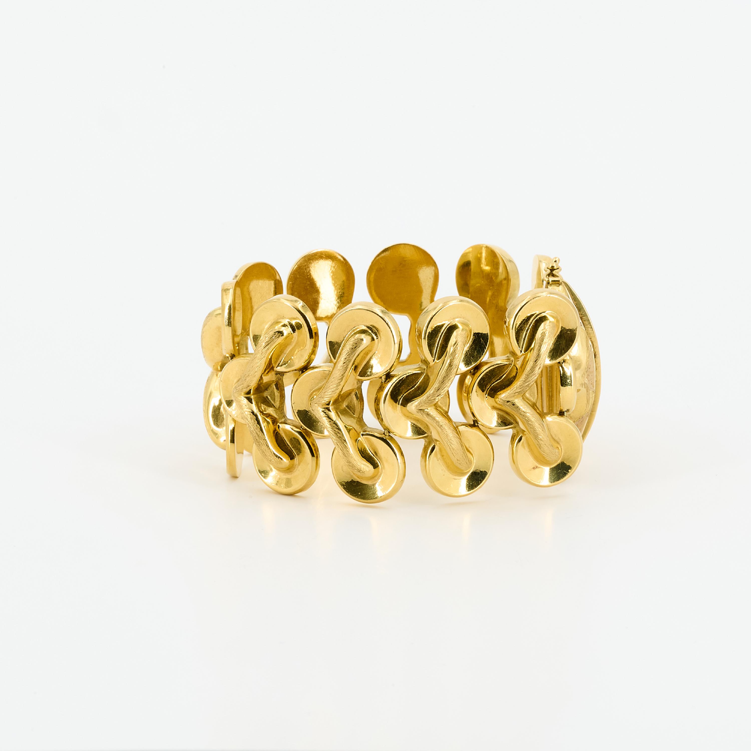 Beschreibung: Dekoratives Retro-Armband mit kreisförmigen Elementen, das durch seinen markanten, chunky