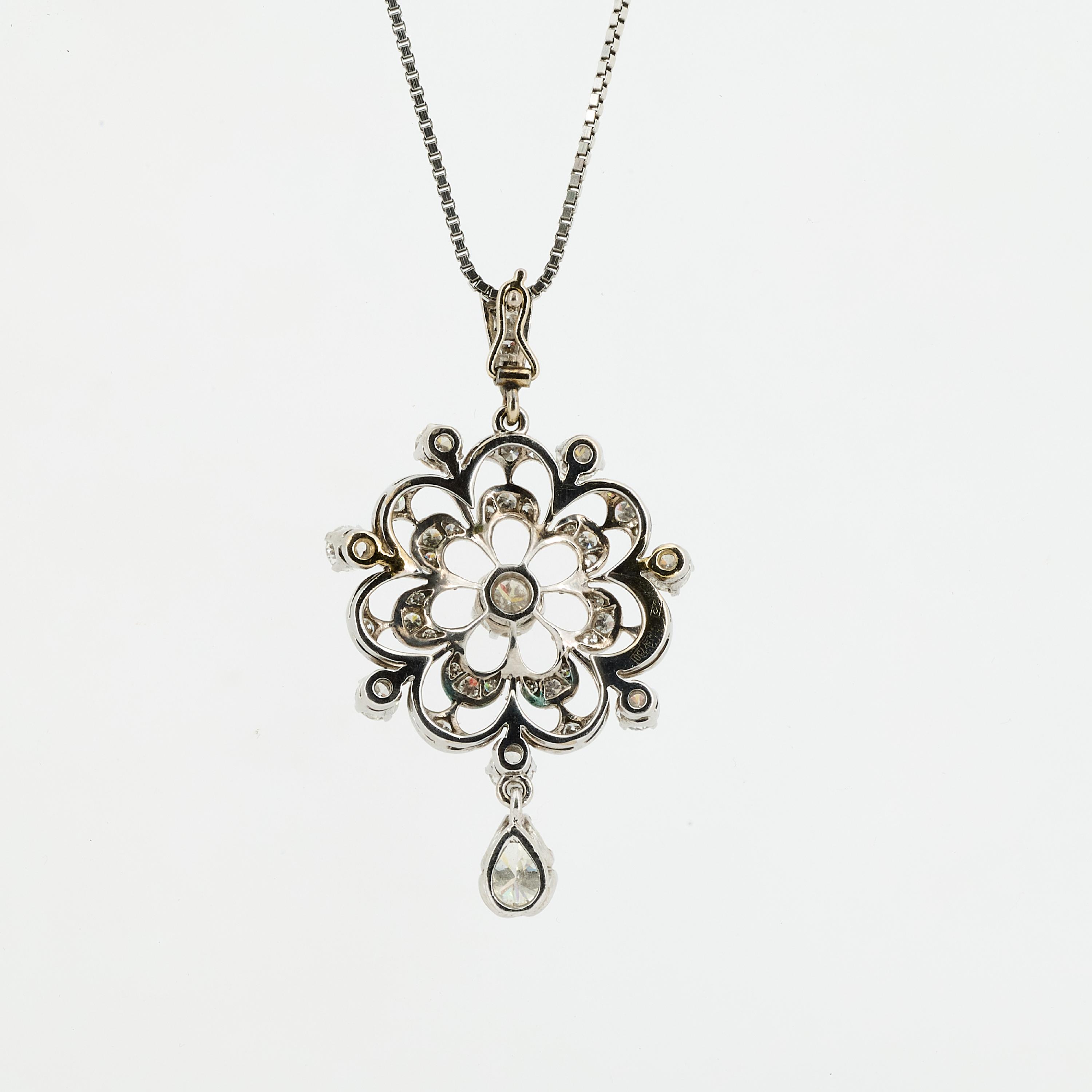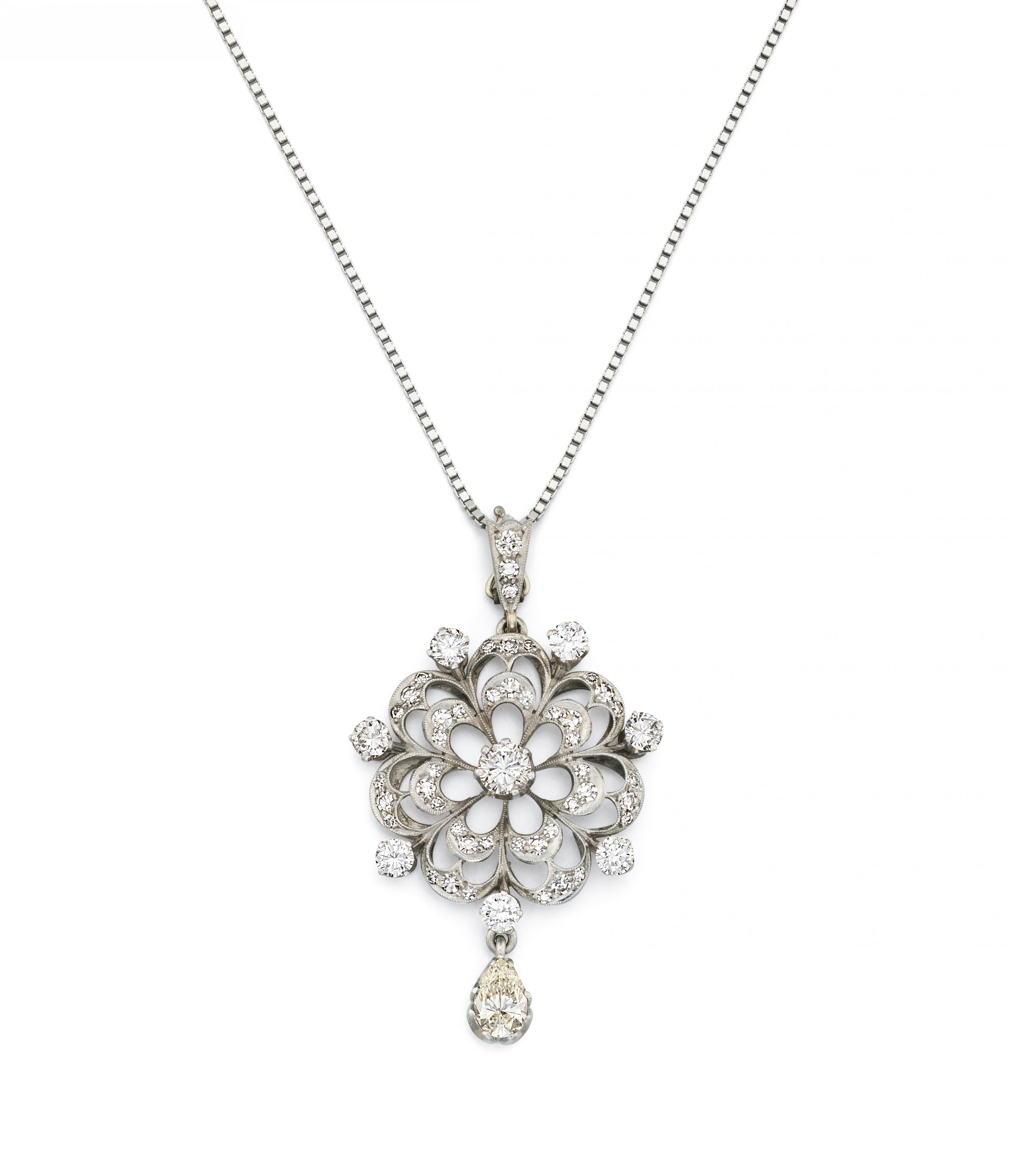 Diamanten: 53 Diamanten im Achtkant-, Brillant- und Tropfen-Schliff zus. ca. 4,3 ct., I-L/SI-P.