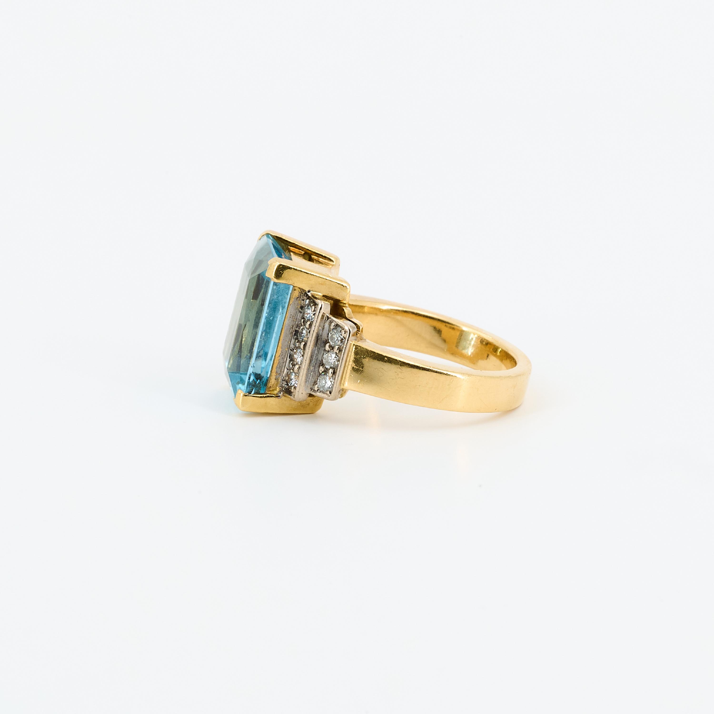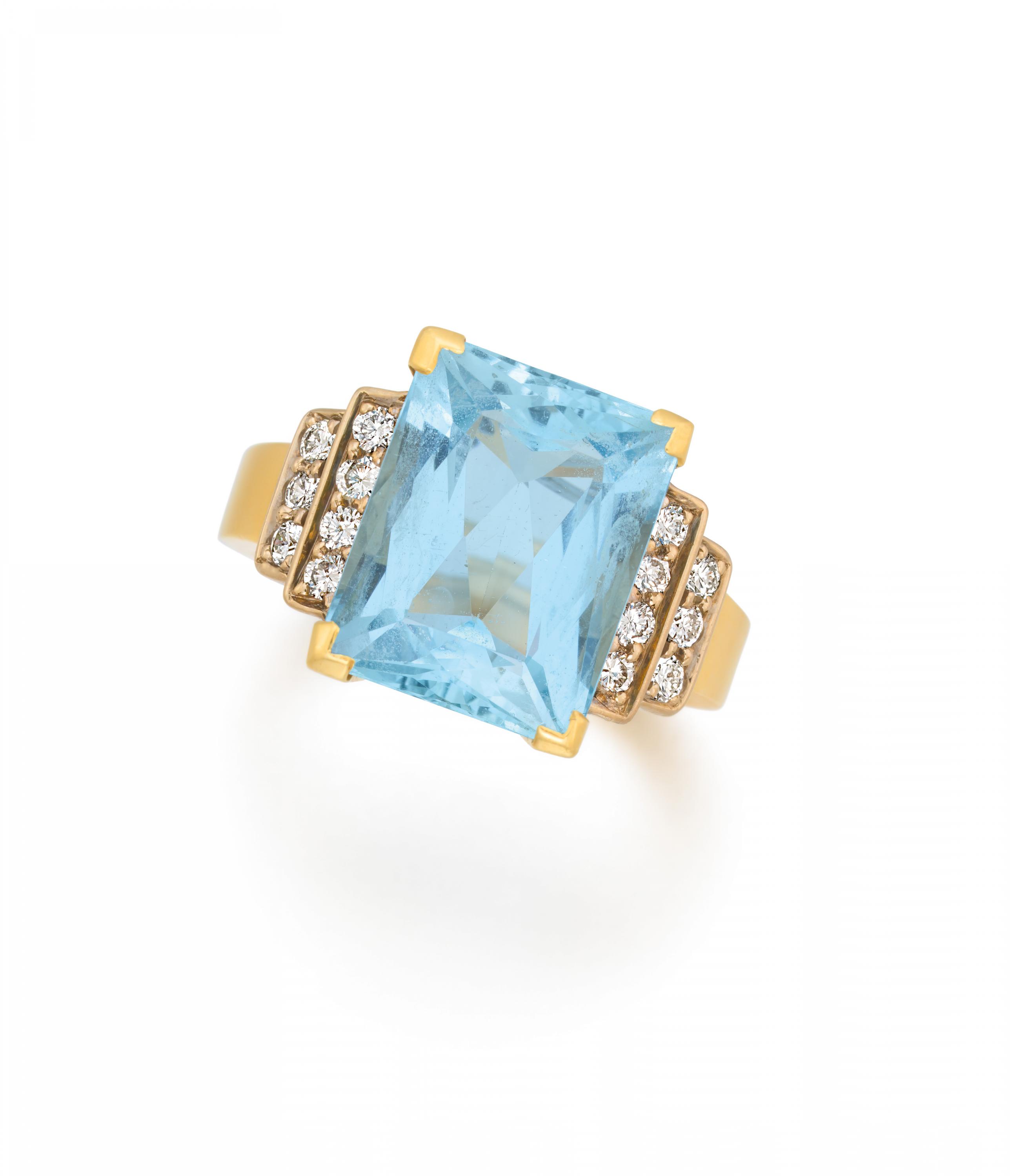 Edelsteine: 1 rechteckiger, facettierter Aquamarin 7,6 ct., feines, helles Blau.