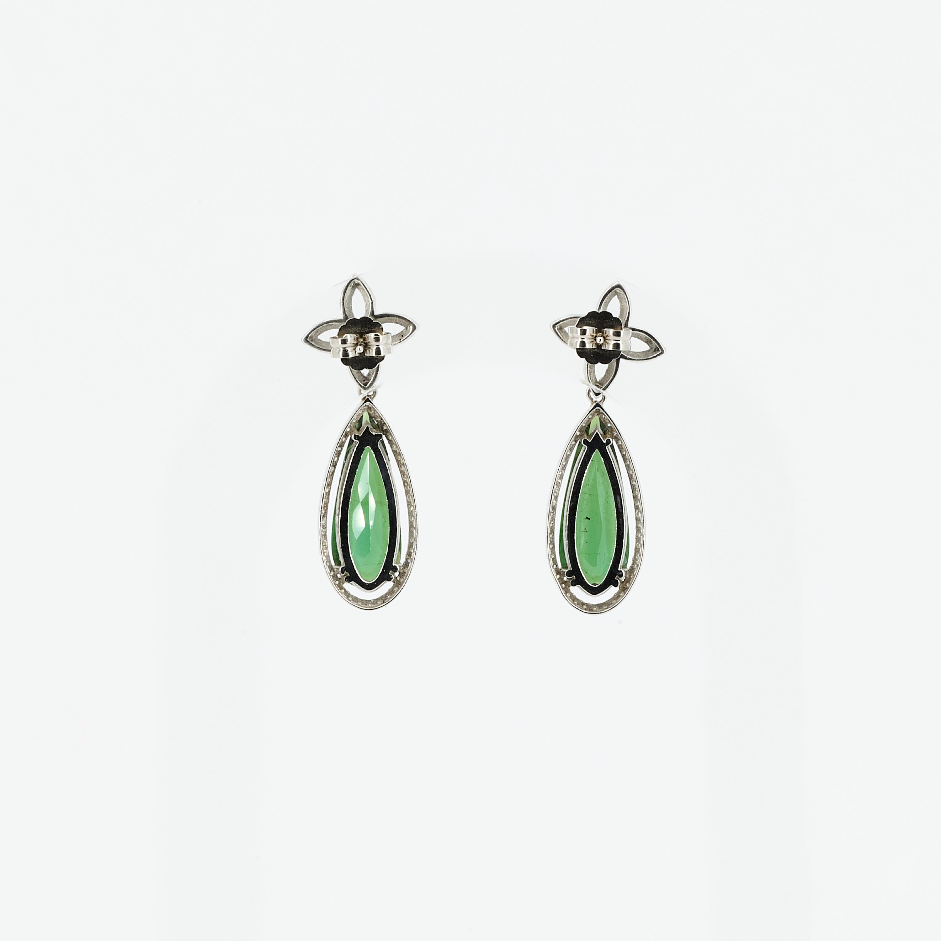 MOOSGRÜNER TURMALIN-DIAMANT-OHRSCHMUCK.
