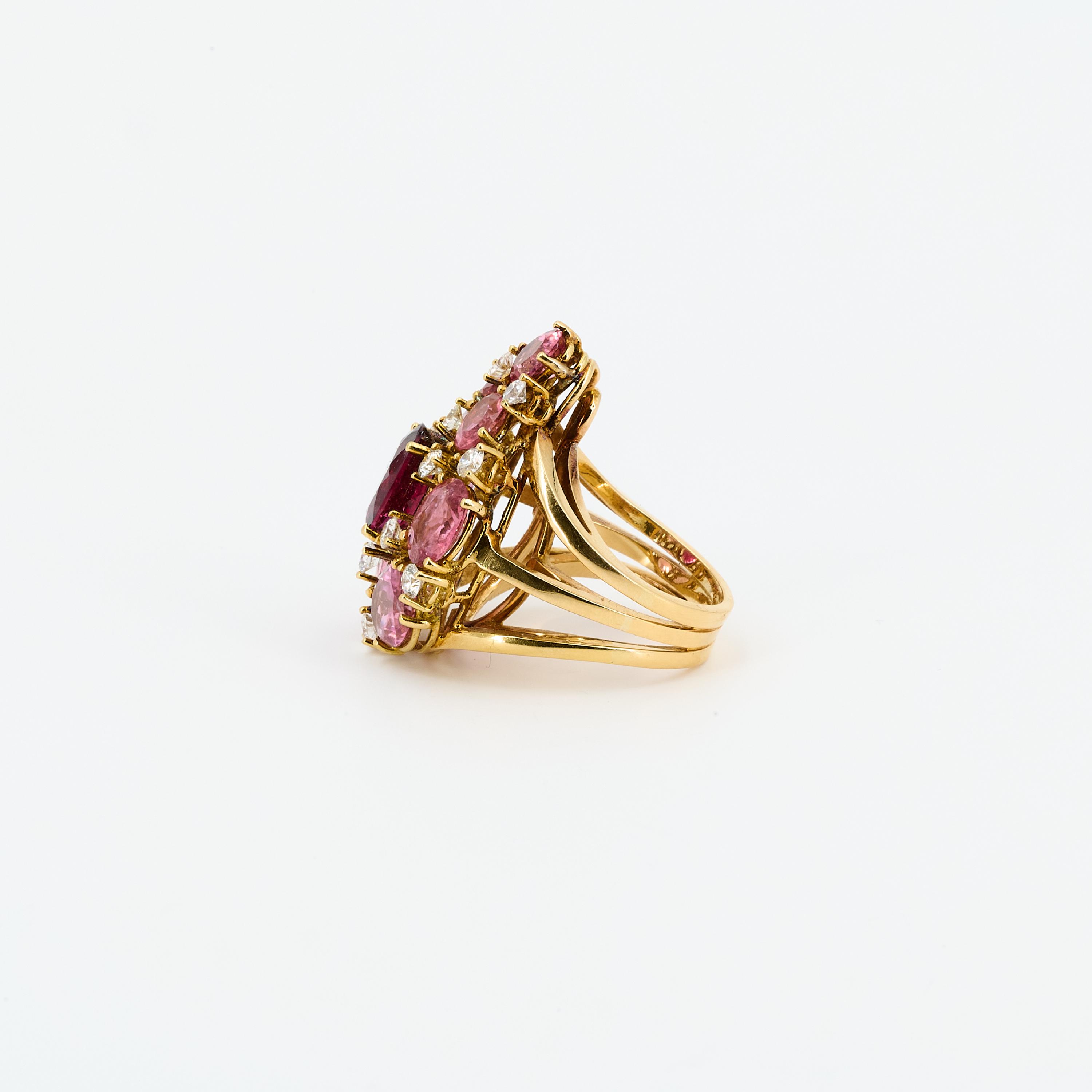 Edelsteine: 1 ovaler, facettierter Turmalin ca. 3,1 ct., intensives Pink, 7 ovale, facettierte Turmaline zus. ca. 6,3 ct., intensives Rosa.