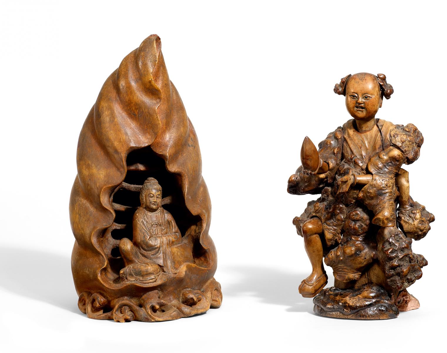 Technik: Bambusschnitzerei mit Resten einer Fassung.
