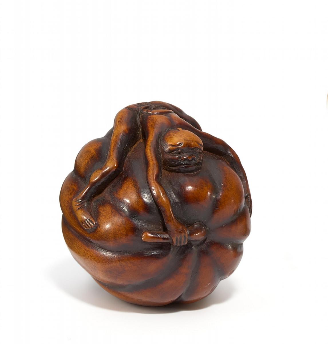 Technik: Buchsbaum, fein geschnitzt und partiell eingefärbt.