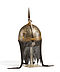 Technik: Eisen mit Gold- und Silbereinlagen (koftgari), fein graviert, Vergoldung. Nackenschutz in Kettgeflecht (zirah).