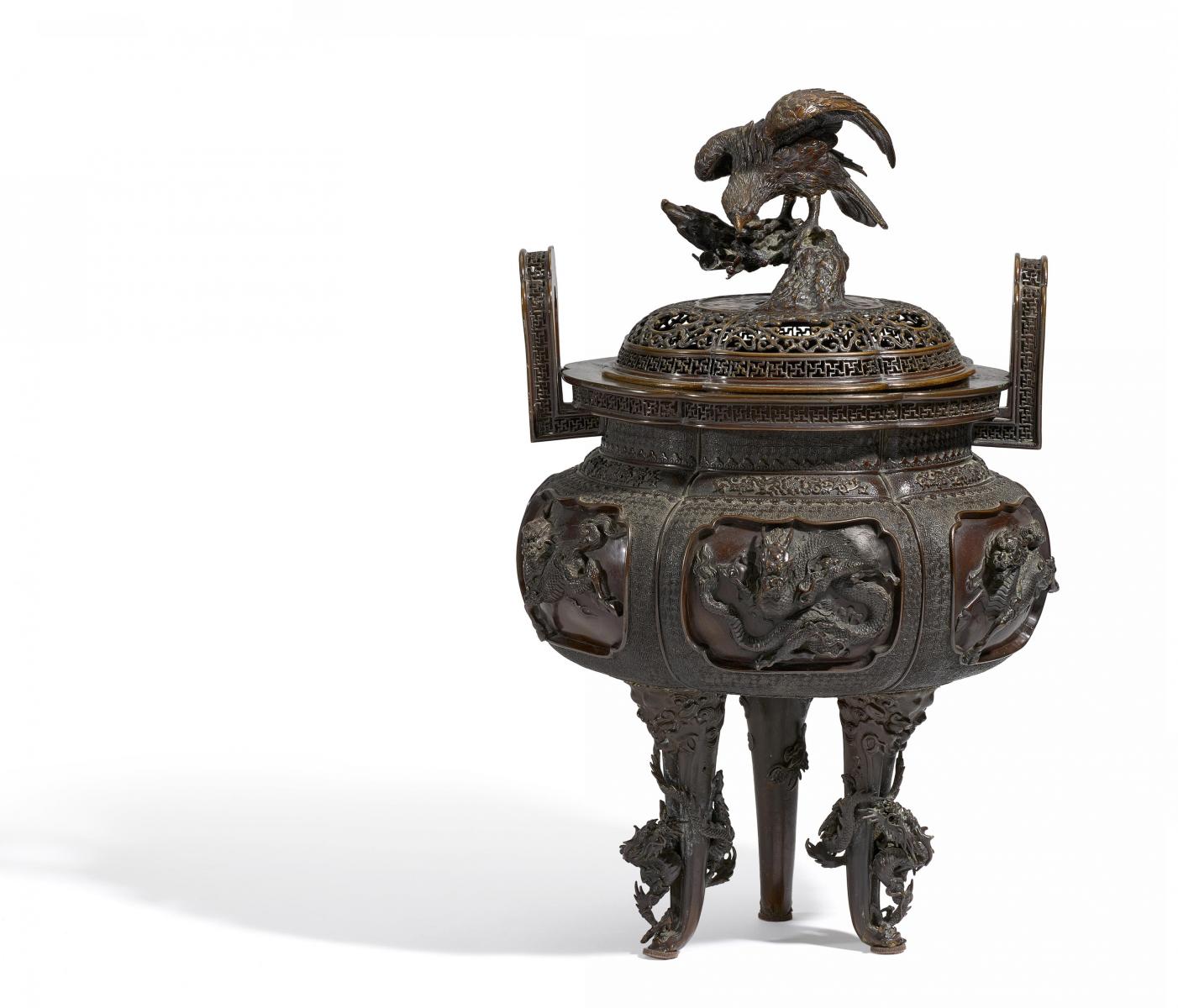 BEDEUTENDER WEIHRAUCHBRENNER MIT DRACHEN UND HÔÔ-VÖGELN.