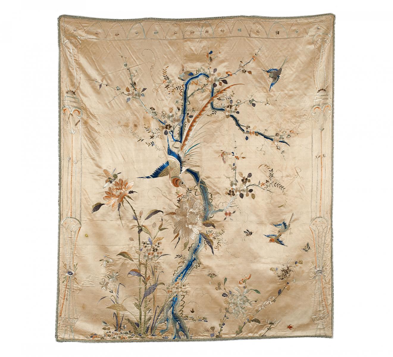 Technik: Seidensatin bestickt mit pastellfarbener Seide.