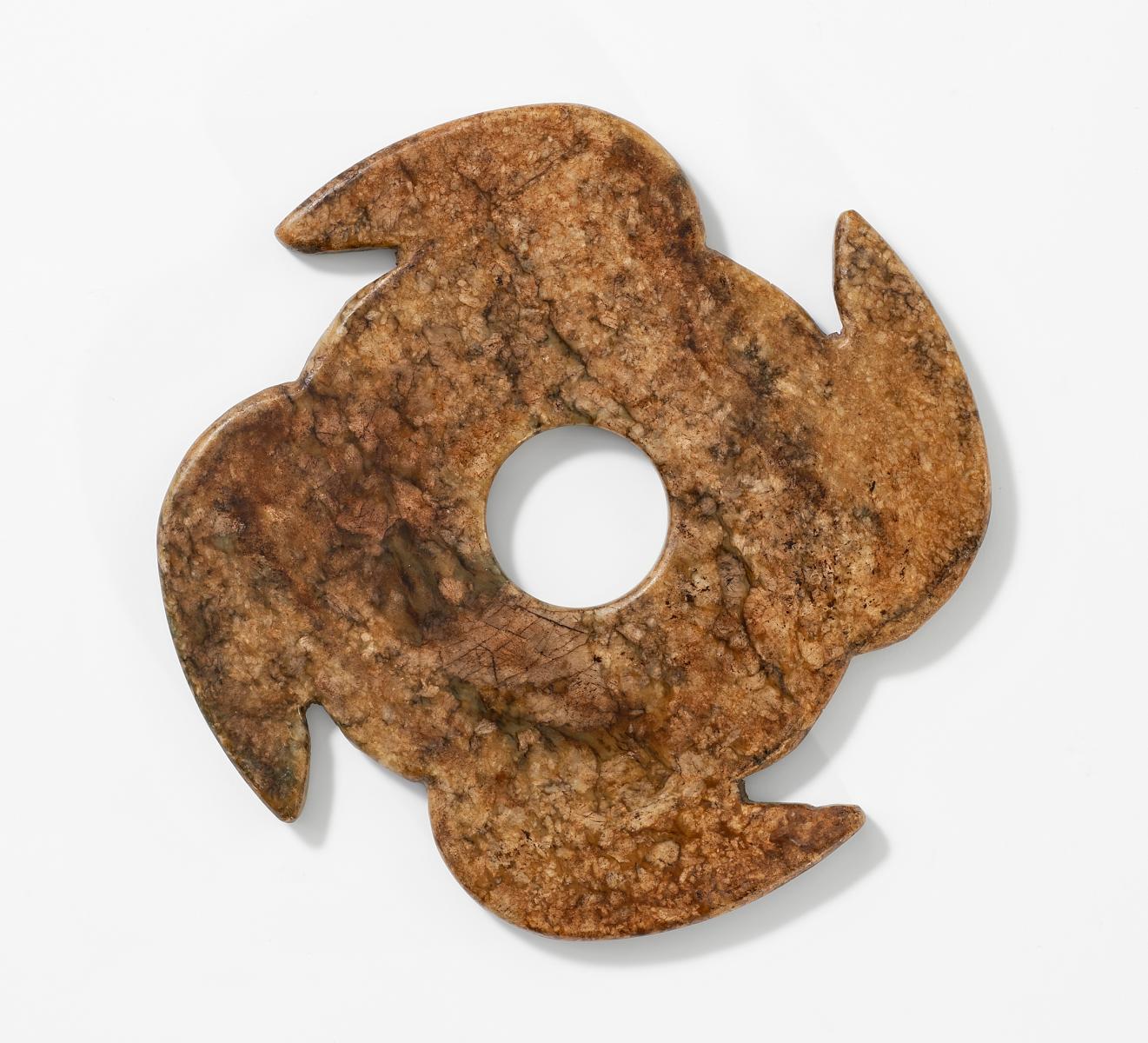 Technik: Rötlich braune Jade mit grünen Partien.