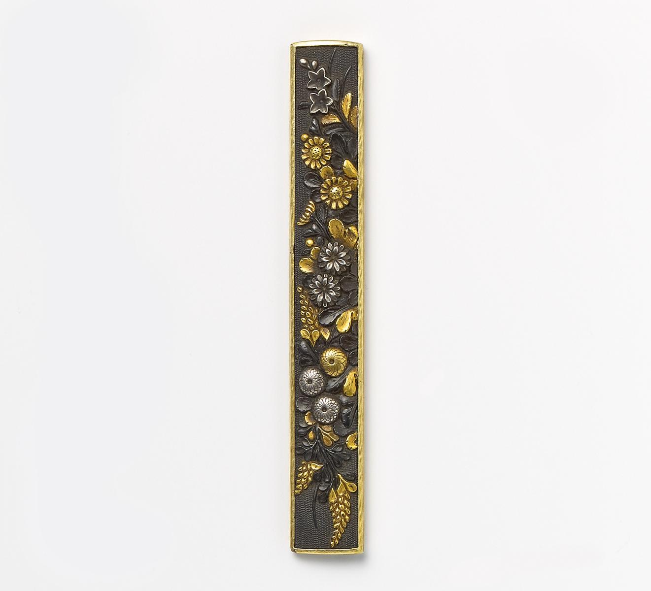 KOZUKA: HERBST-GRÄSER, SHAKUDO MIT GOLD UND SILBER.