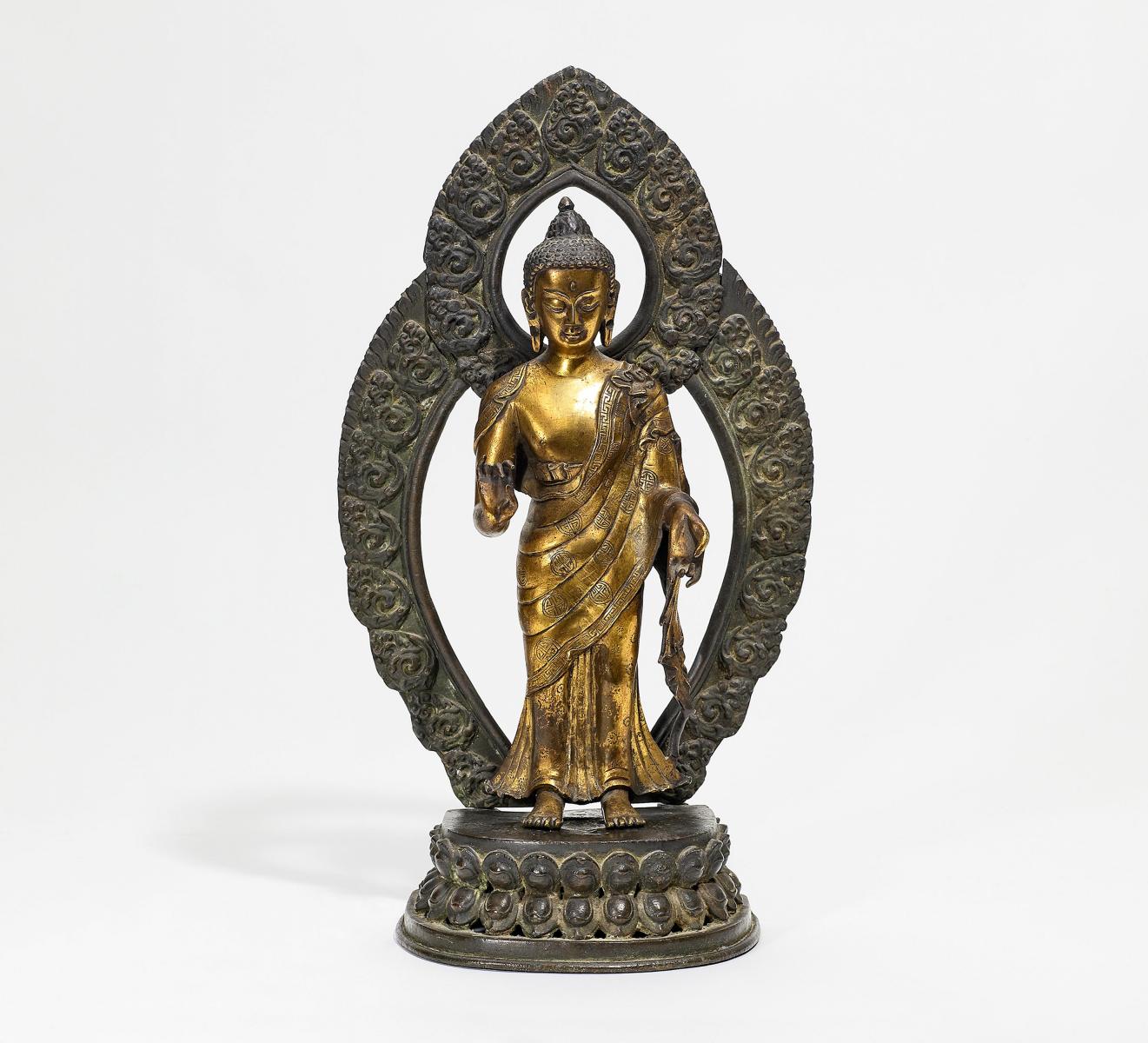 Maße: Buddha 29,5x10cm, Mandorla 40x22,7cm.
